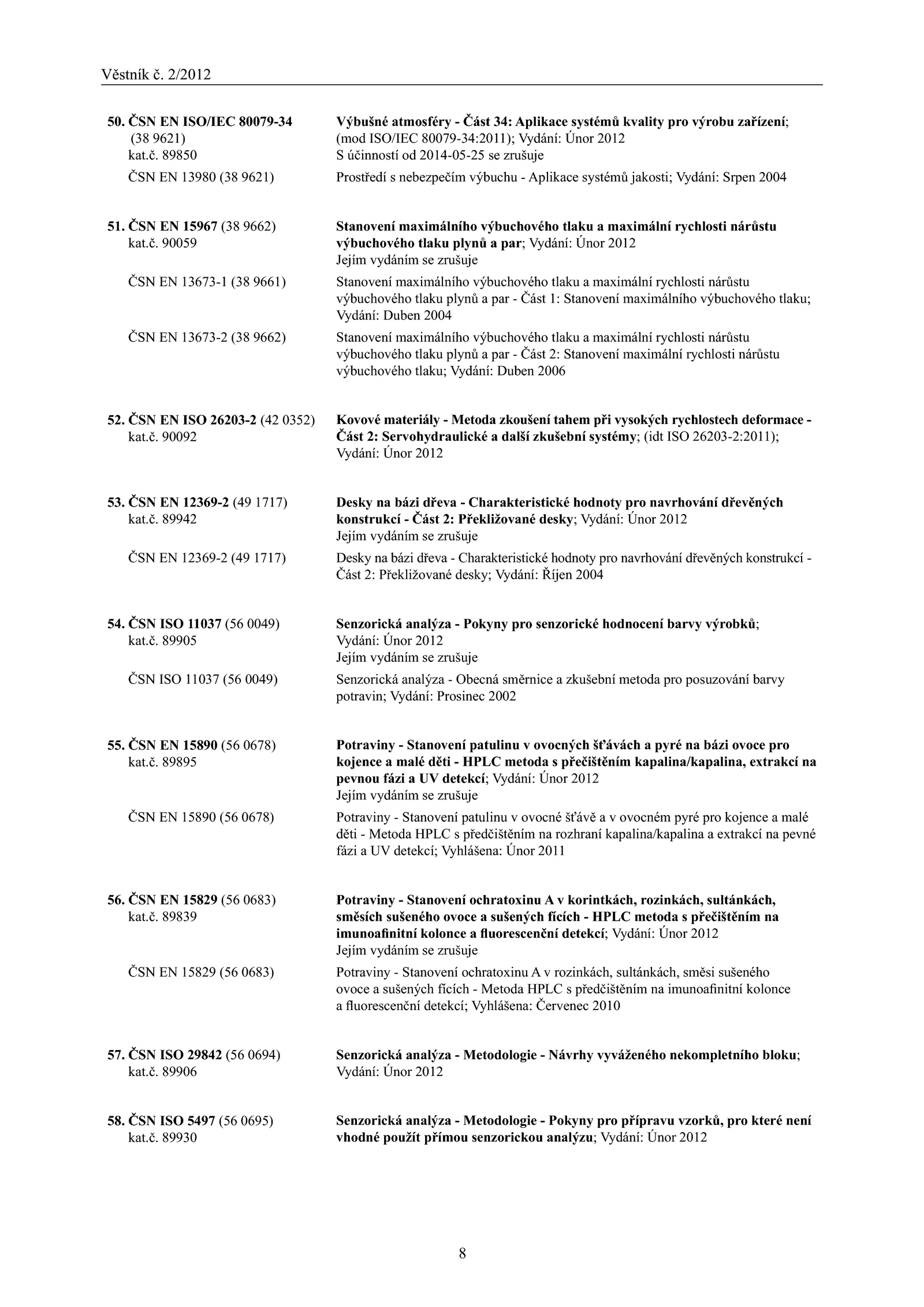 vhodné použít přímou senzorickou analýzu; Vydání: Únor 2012
