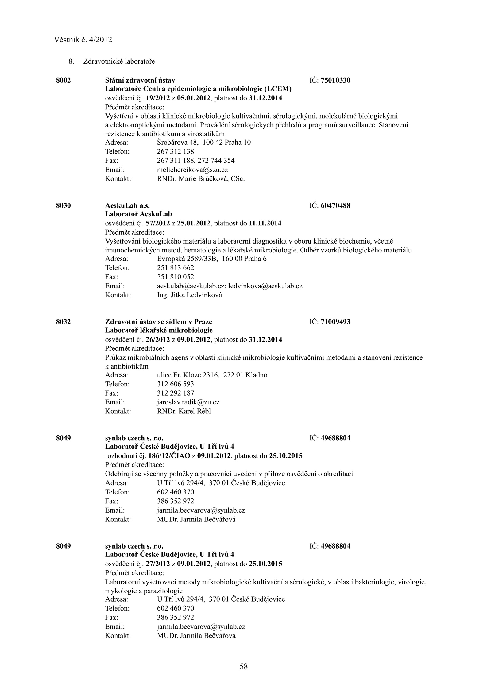 Zdravotnické laboratoře8.10. 19/2012 z 05.2012, platnost 25.cz