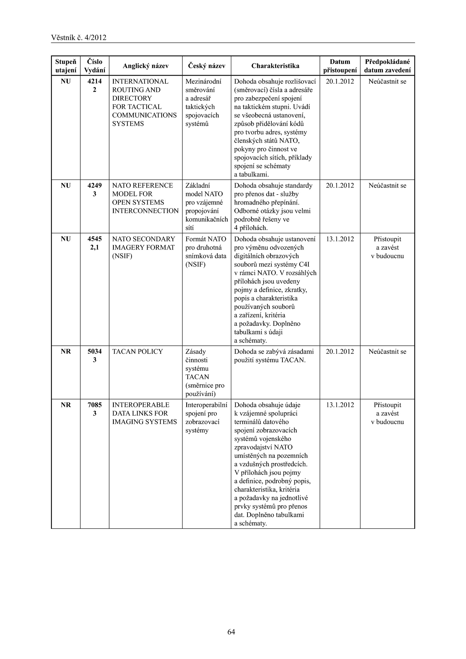 OZNÁMENÍ č. 35/12Úřadu pro technickou normalizaci, metrologii a státní zkušebnictvío vydání ČSN, jejich změn, oprav a zrušeníÚřad pro technickou normalizaci, metrologii a státní zkušebnictví podle § 4 zákona č. 22/1997 Sb. oznamuje, že byly vydány,změněny, opraveny nebo zrušeny dále uvedené ČSN.Počátek platnosti ČSN, jejich změn a oprav počíná obecně prvým dnem měsíce následujícího po měsíci vydání, pokud neníuvedeno jinak.Normy označené *) přejímají mezinárodní nebo evropské normy převzetím originálu.U změn a oprav, kterými se mění název normy a jsou vydány již pod změněným názvem, je na prvém místě uveden nový název.Původní název normy je v těchto případech pro informaci uveden v závorkách.
