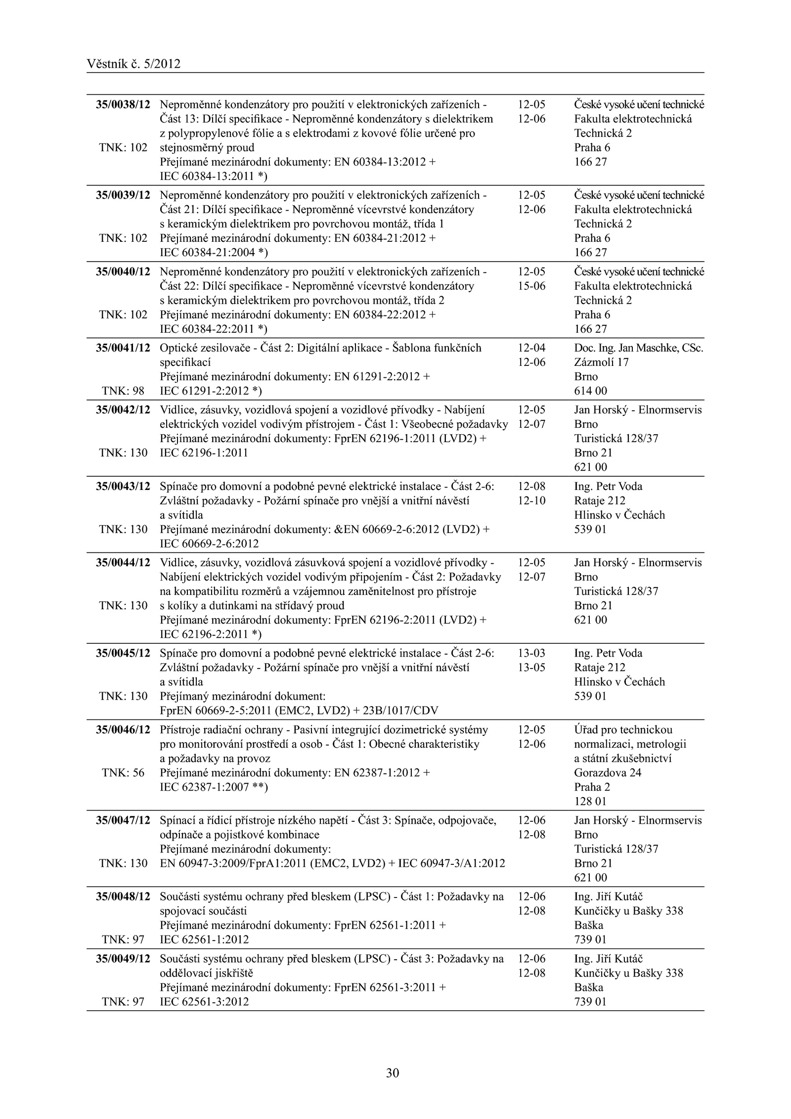 OZNÁMENÍ č. 42/12Úřadu pro technickou normalizaci, metrologii a státní zkušebnictvío určených normáchÚřad pro technickou normalizaci, metrologii a státní zkušebnictví oznamuje podle § 4a odst. 2 zákona č. 22/1997 Sb., o technických požadavcích na výrobky a o změně a doplnění některých zákonů,ve znění pozdějších předpisů, určené normy vztahující se k jednotlivým nařízením vlády ...