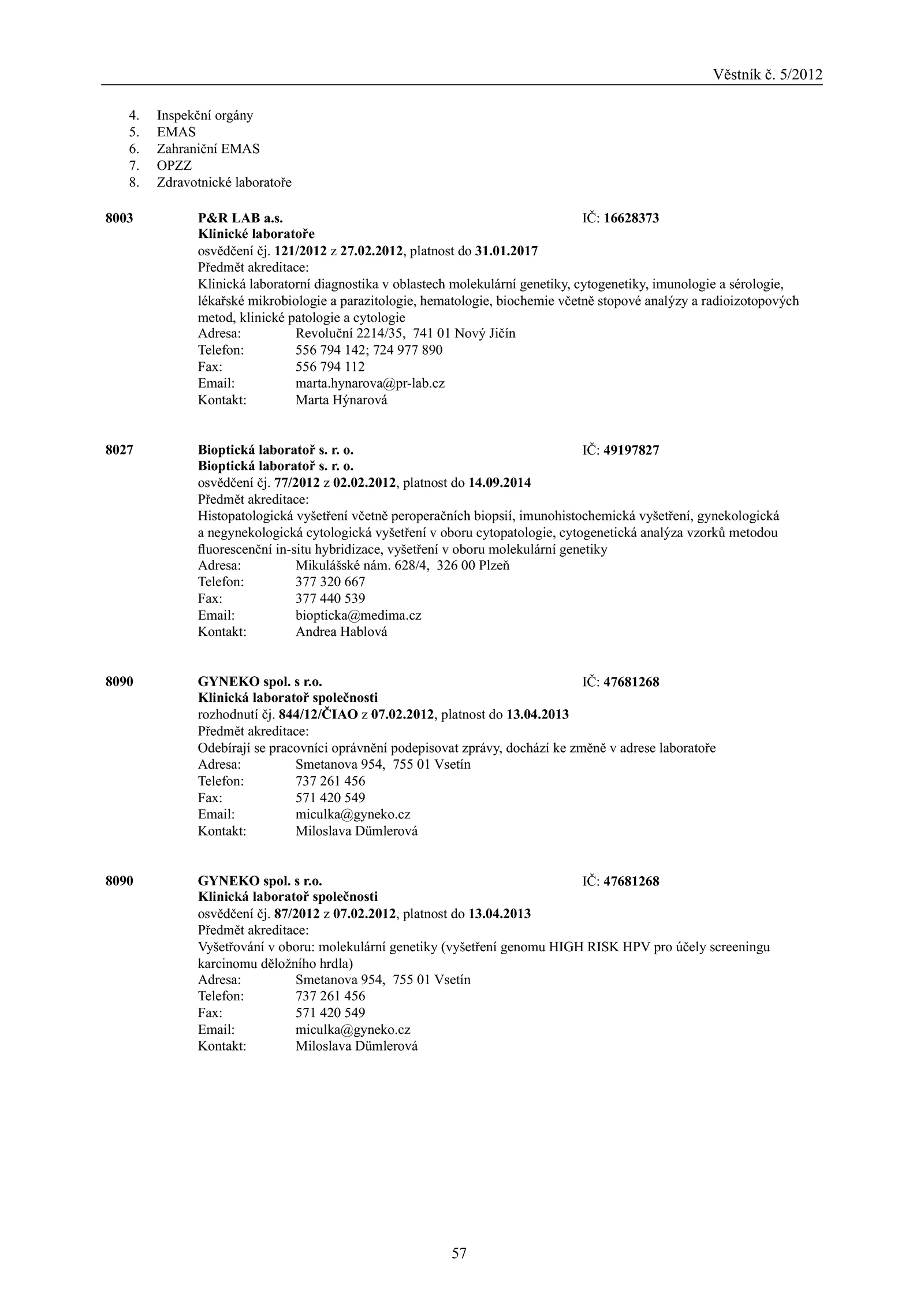osvědčení čj. 121/2012 z 27.02.o.2012, platnost 13.cz