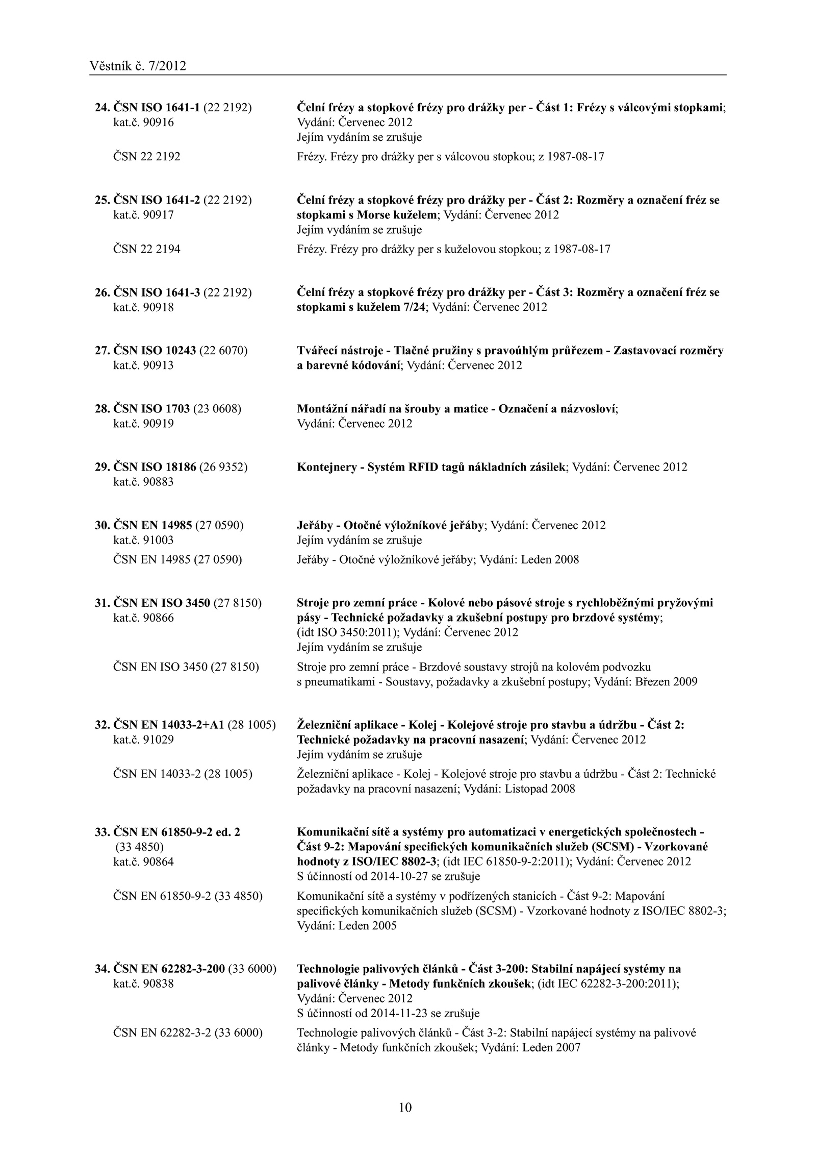 OZNÁMENÍ č. 78/12Úřadu pro technickou normalizaci, metrologii a státní zkušebnictvío určených normáchÚřad pro technickou normalizaci, metrologii a státní zkušebnictví oznamuje podle § 4a odst. 2 zákona č. 22/1997 Sb., o technických požadavcích na výrobky a o změně a doplnění některých zákonů,ve znění pozdějších předpisů, určené normy vztahující se k jednotlivým nařízením vládyPoznámkaTímto oznámením se doplňují oznámení o určených normách, zveřejněná ve Věstníku ÚNMZ č. 9/97, ...