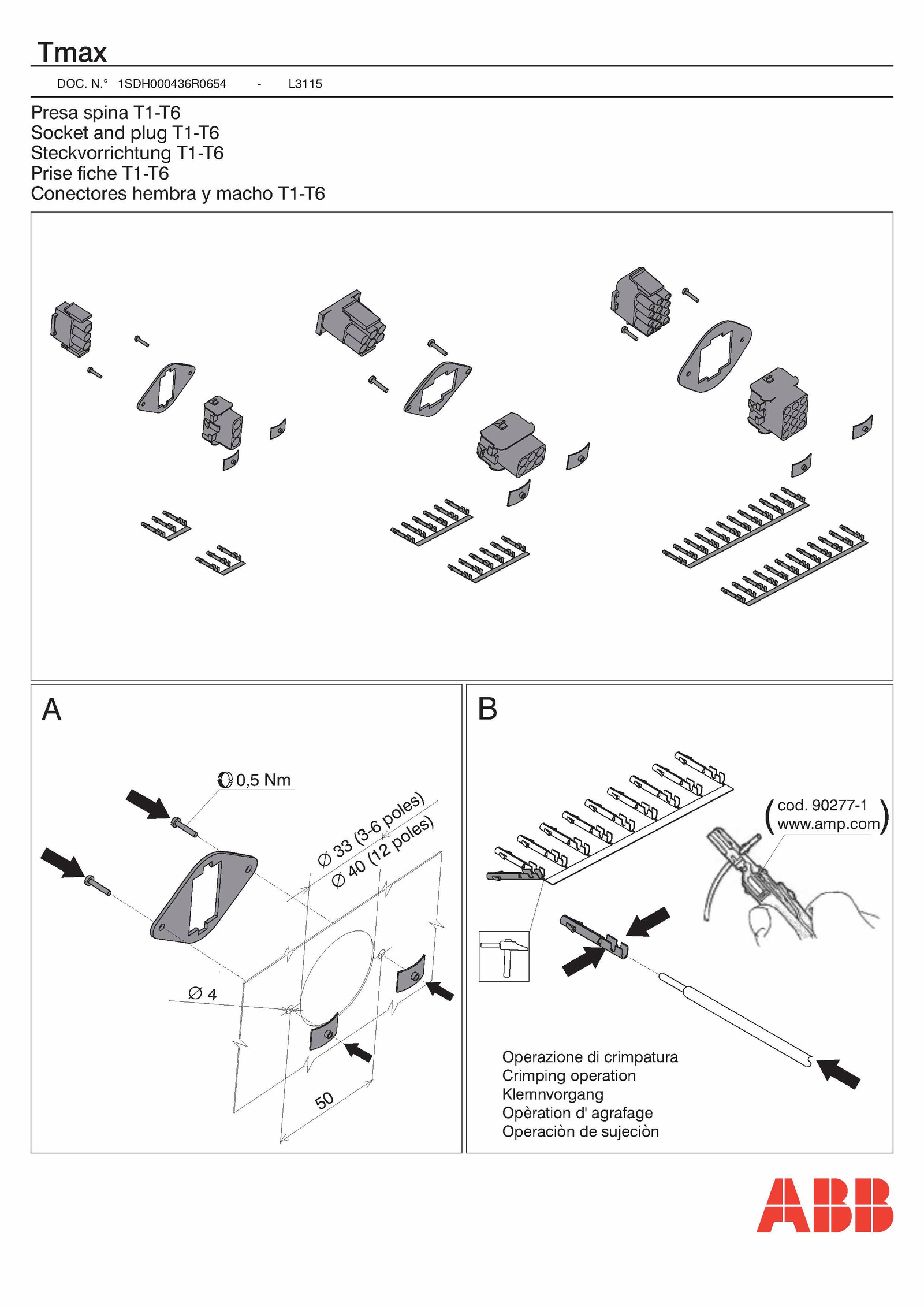 ° 1SDH000436R0654 L3115 Presa spina T1-T6 Socket and plug T1-T6 Steckvorrichtung T1-T6 Prise fiche T1-T6 Conectores hembra macho T1-T6 A » /. N.Tmax DOC