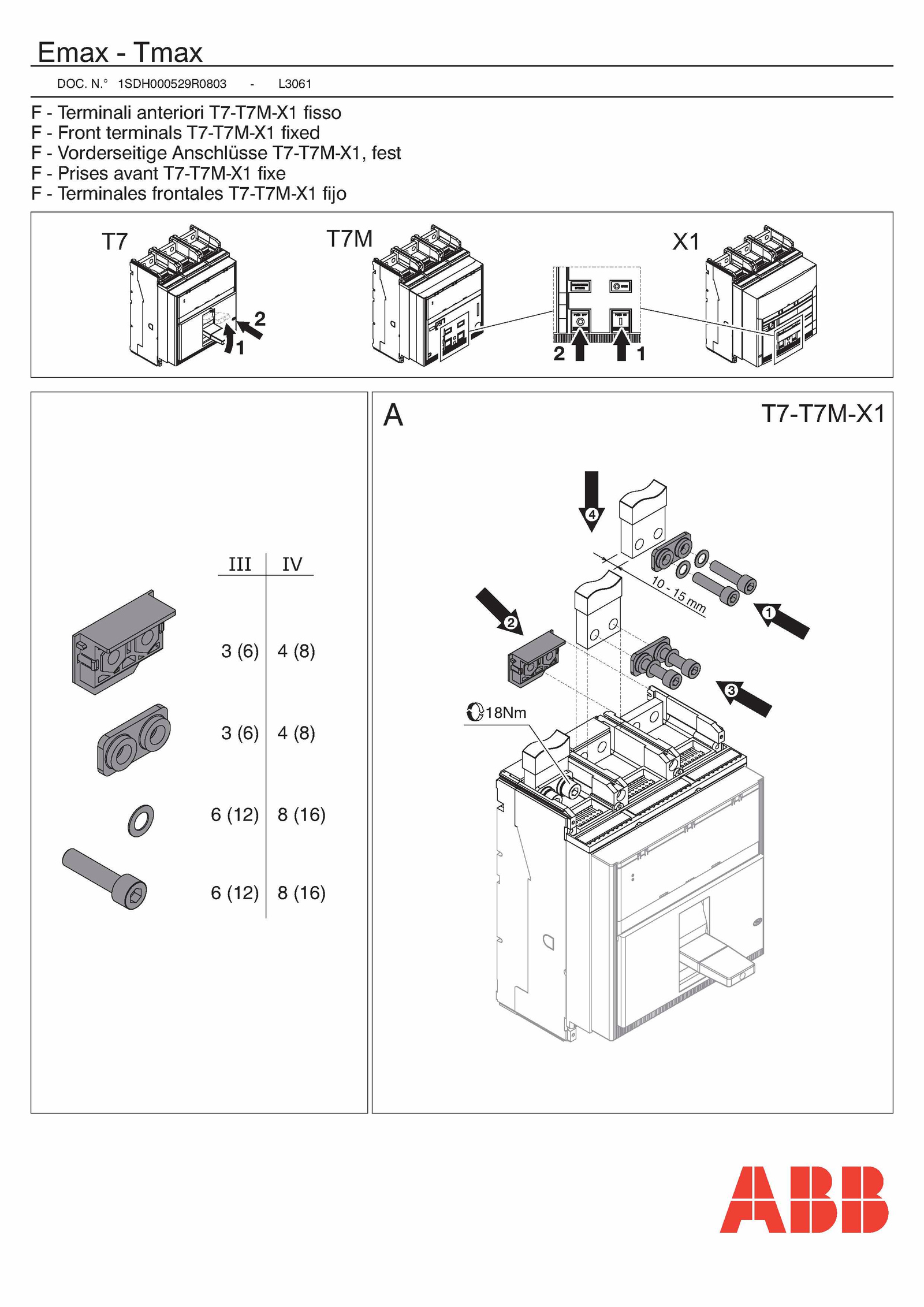 Emax Tmax DOC. N.° 1SDH000529R0803 L3061 F Terminali anteriori T7-T7M-X1 fisso F Front terminals T7-T7M-X1 fixed F Vorderseitige Anschlüsse T7-T7M-X1, fest F Prises avant T7-T7M-X1 fixe F Terminales frontales T7-T7M-X1 fijo A I M