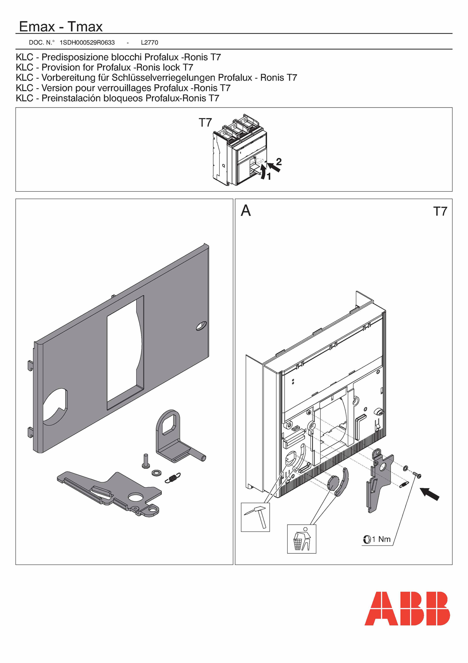° 1SDH000529R0633 L2770 KLC Predisposizione blocchi Profalux -Ronis T7 KLC Provision for Profalux -Ronis lock T7 KLC Vorbereitung für Schlüsselverriegelungen Profalux Ronis T7 KLC Version pour verrouillages Profalux -Ronis T7 KLC Preinstalacion bloqueos Profalux-Ronis T7 A II»MWW . N.Emax Tmax DOC