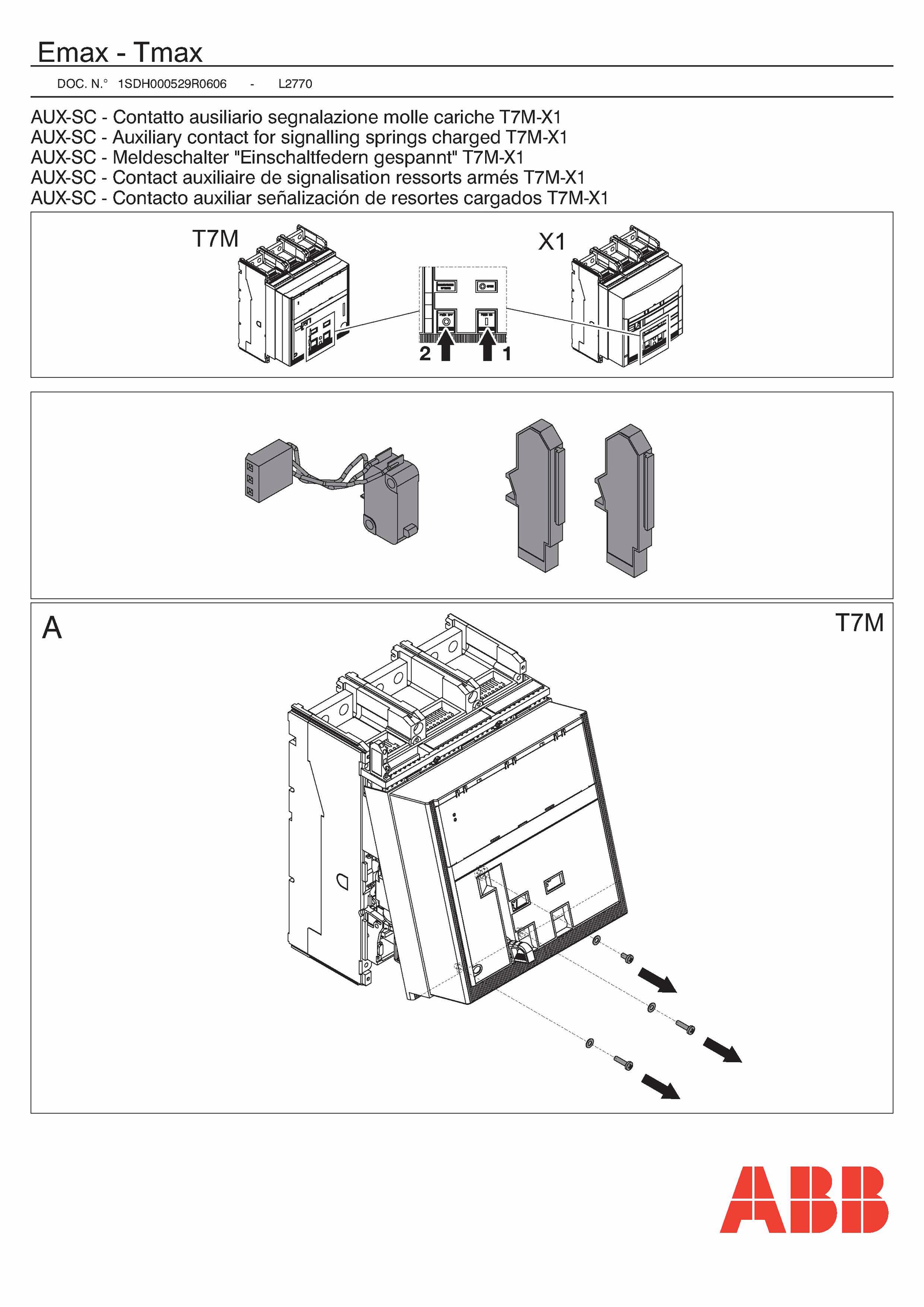 ° 1SDH000529R0606 L2770 AUX-SC Contatto ausiliario segnalazione molle cariche T7M-X1 AUX-SC Auxiliary contact for signalling springs charged T7M-X1 AUX-SC Meldeschalter "Einschaltfedern gespannt" T7M-X1 AUX-SC Contact auxiliaire signalisation ressorts armés T7M-X1 AUX-SC Contacto auxiliar señalización resortes cargados T7M-X1 A II»M.Emax Tmax DOC. N