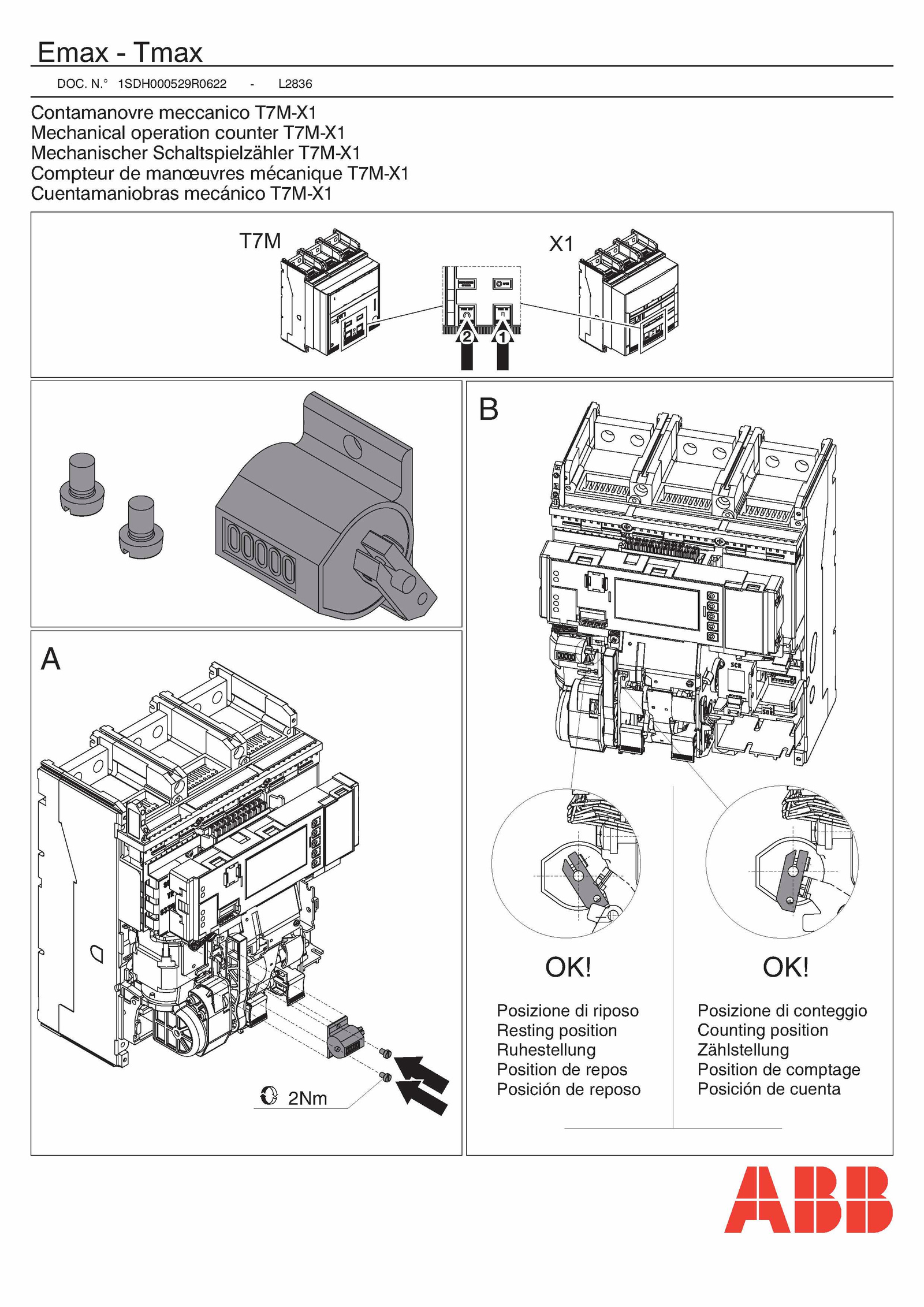 Emax Tmax DOC. N.° 1SDH000529R0622 L2836 Contamanovre meccanico T7M-X1 Mechanical operation counter T7M-X1 Mechanischer Schaltspielzähler T7M-X1 Compteur manœuvres mécanique T7M-X1 Cuentamaniobras mecánico T7M-X1 A II»m