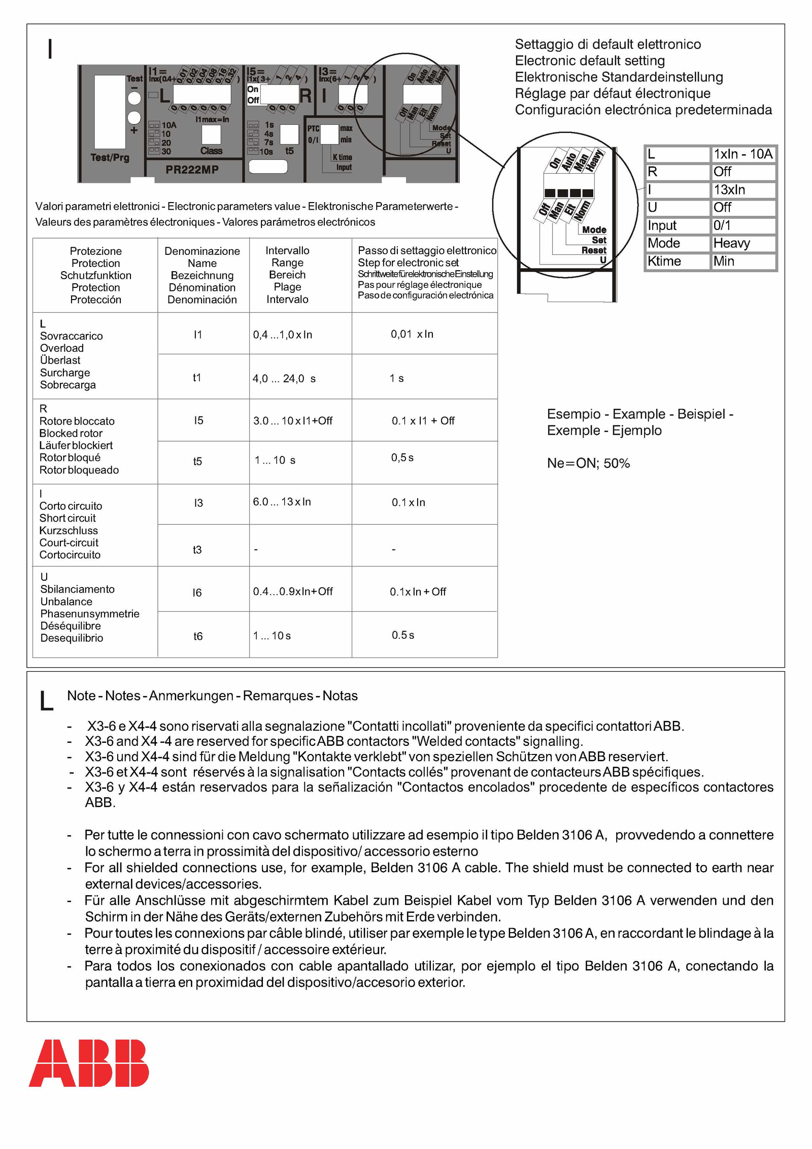 - X3-6 X4-4 sono riservati alia segnalazione "Contatti incollati" proveniente specifici contattori ABB.1 xln