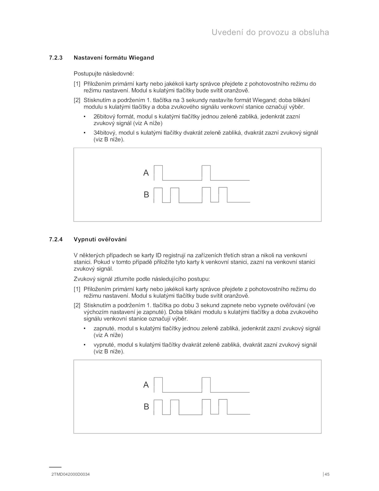 [2] Stisknutím podržením tlačítka sekundy nastavíte formát Wiegand; doba blikání