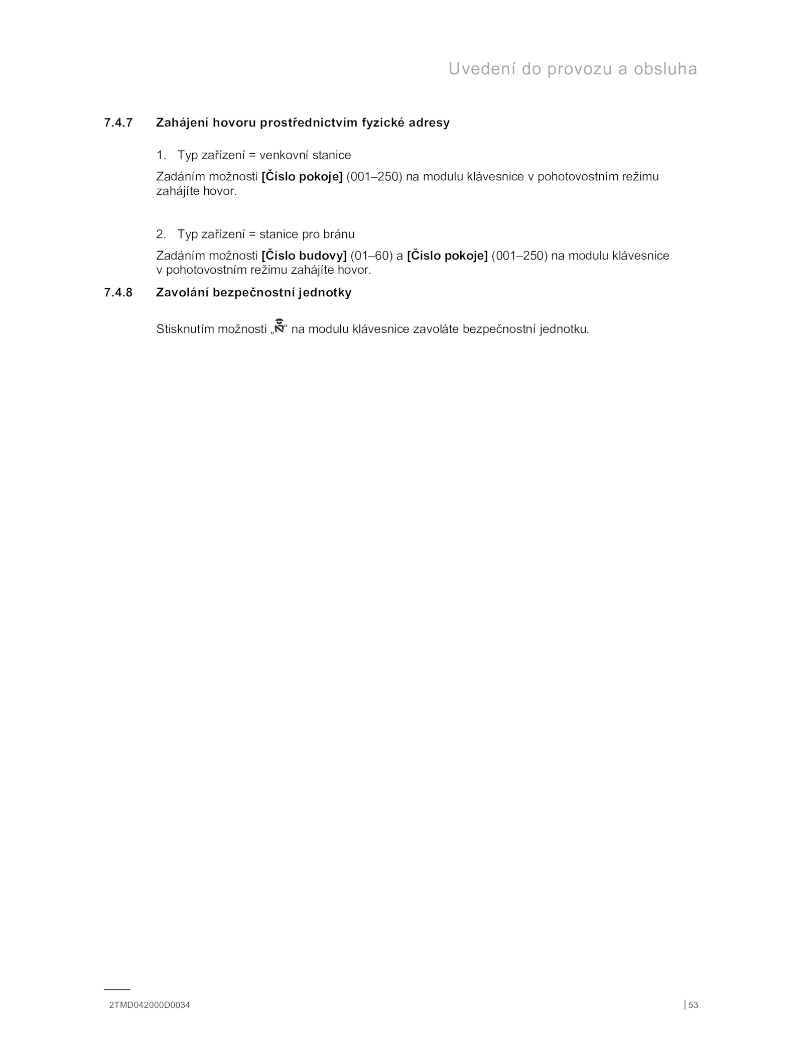 Zadáním možnosti [Číslo budovy] (01–60) [Číslo pokoje] (001–250) modulu klávesnice