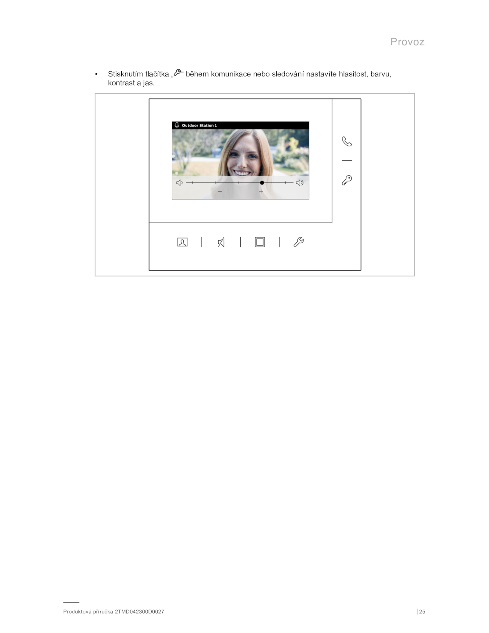 .Provoz Produktová příručka 2TMD042300D0027 │25 ■ Stisknutím tlačítka během komunikace nebo sledování nastavíte hlasitost, barvu, kontrast jas