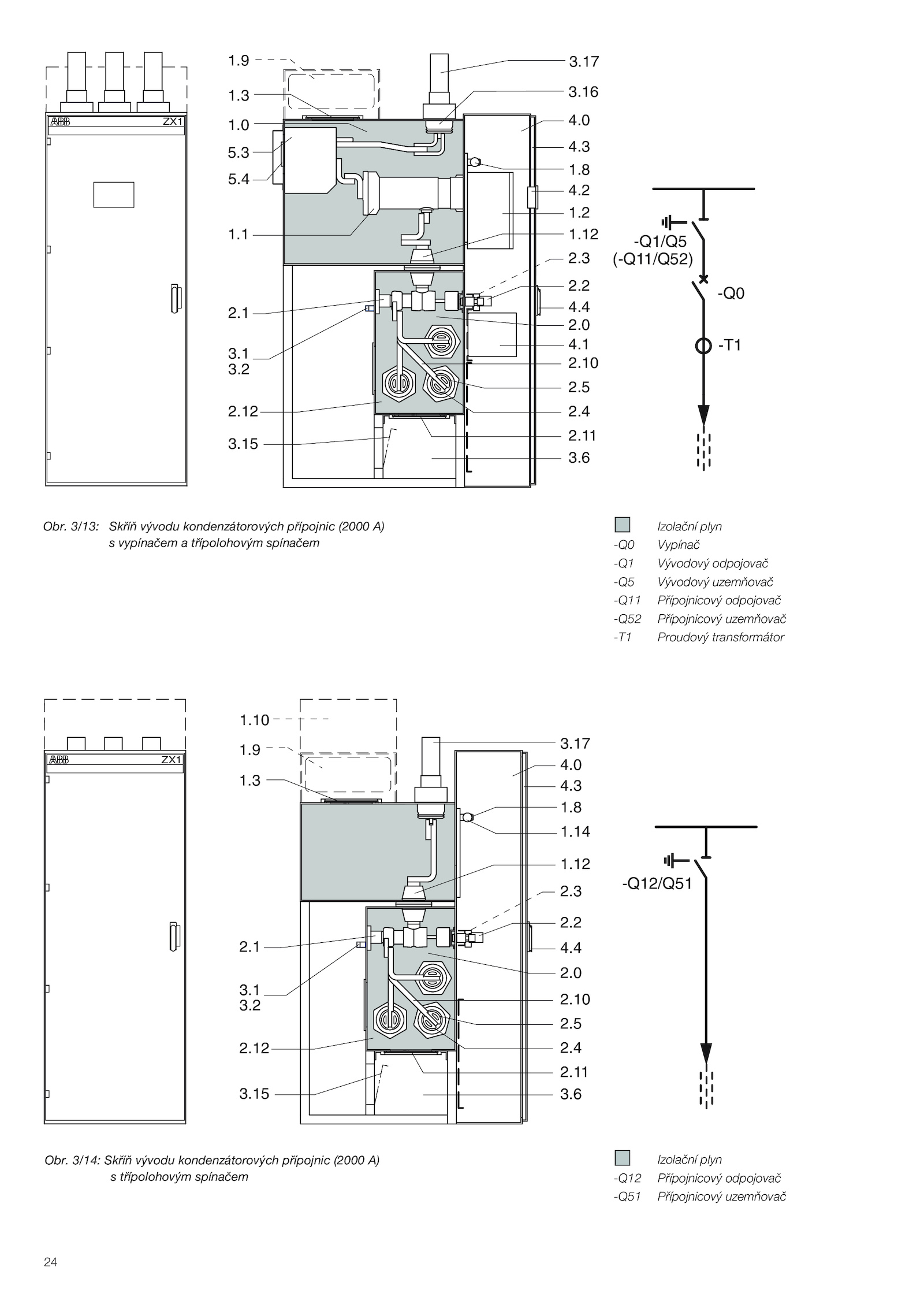 4 2.10 2.2 5.4 2.24 ZX1 -Q12/Q51 ZX1 -Q0 -T1 -Q1/Q5 (-Q11/Q52) Obr.17 Izolaãní plyn -Q0 Vypínaã -Q1 V˘vodov˘ odpojovaã -Q5 V˘vodov˘ uzemÀovaã -Q11 Pfiípojnicov˘ odpojovaã -Q52 Pfiípojnicov˘ uzemÀovaã -T1 Proudov˘ transformátor Izolaãní plyn -Q12 Pfiípojnicov˘ odpojovaã -Q51 Pfiípojnicov˘ uzemÀovaã .12 4.5 2.2 2.17 1.4 2.10 2.1 2.9 3.0 4.12 1.12 4.3 5.1 3.15 4.3 1. 3/14: Skříň vývodu kondenzátorových přípojnic (2000 A) s třípolohovým spínačem 1.2 4.2 1. 3/13: Skříň vývodu kondenzátorových přípojnic (2000 A) s vypínačem třípolohovým spínačem 3.3 3.11 2.5 2.2 2.1 1.0 4.0 1.12 1.6 1.1 3.0 3.3 1.8 1.3 2.6 1.3 2.0 3.4 2.9 1.14 3.1 3.1 3.2 2.8 4.4 2.16 3.11 2.15 4.3 2.10 Obr