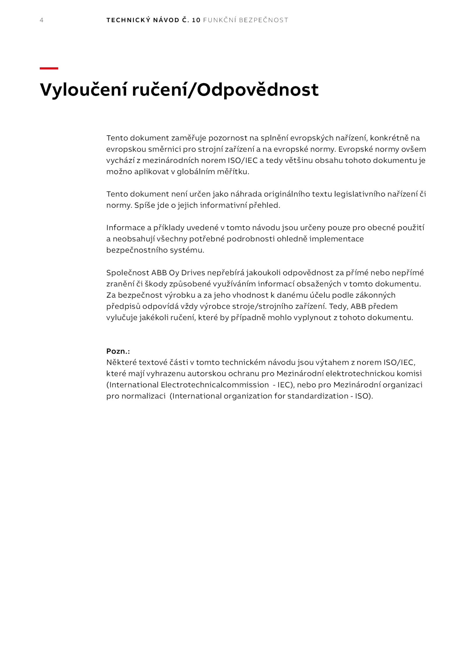 Společnost ABB Drives nepřebírá jakoukoli odpovědnost přímé nebo nepřímé