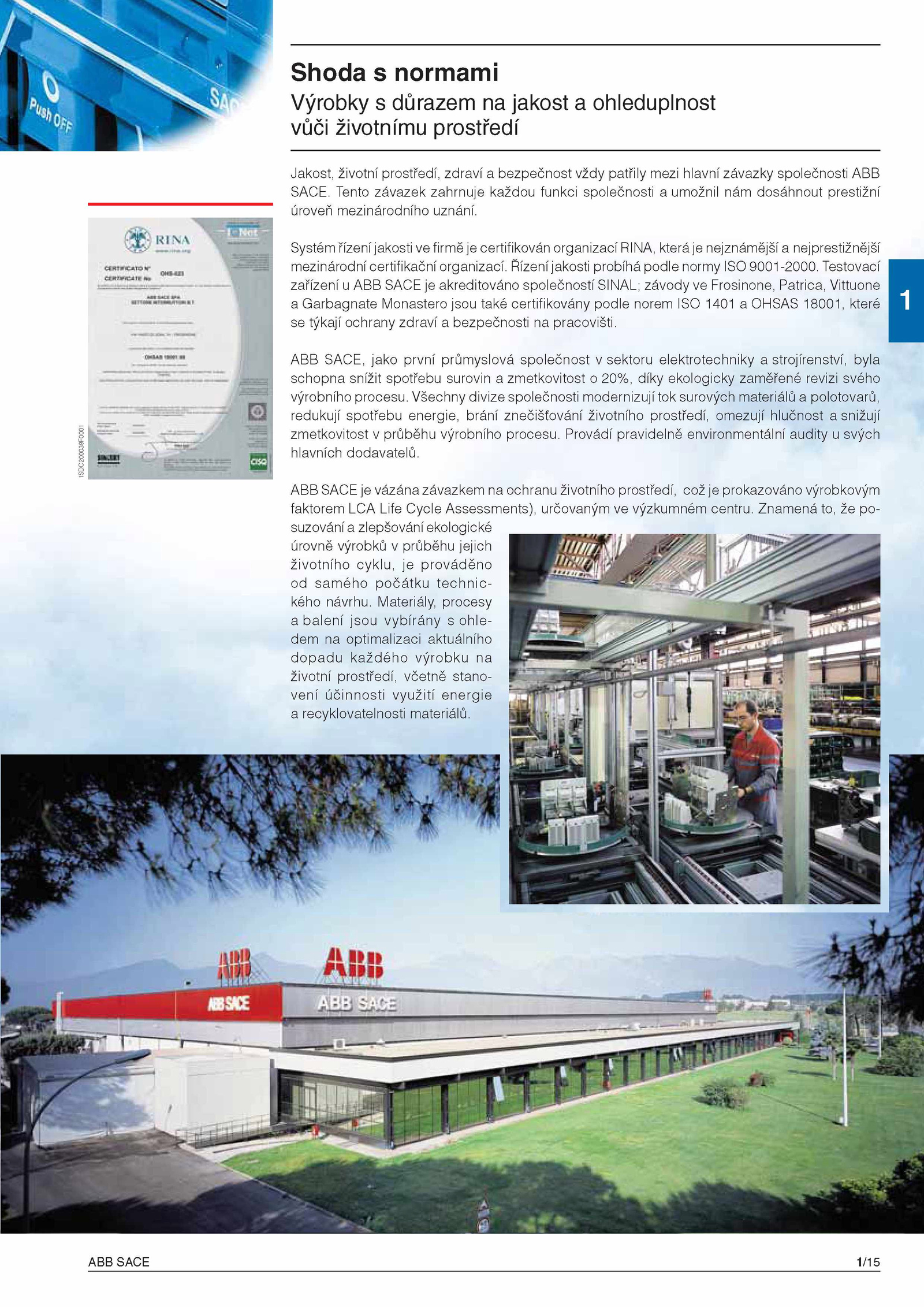 ABB SACE vázána závazkem ochranu životního prostředí, což prokazováno výrobkovým