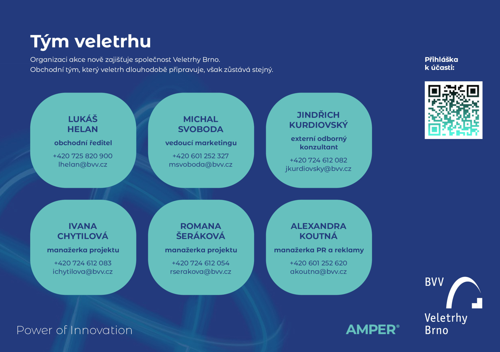 Obchodní tým, který veletrh dlouhodobě připravuje, však zůstává stejný.Power Innovation AMPER®