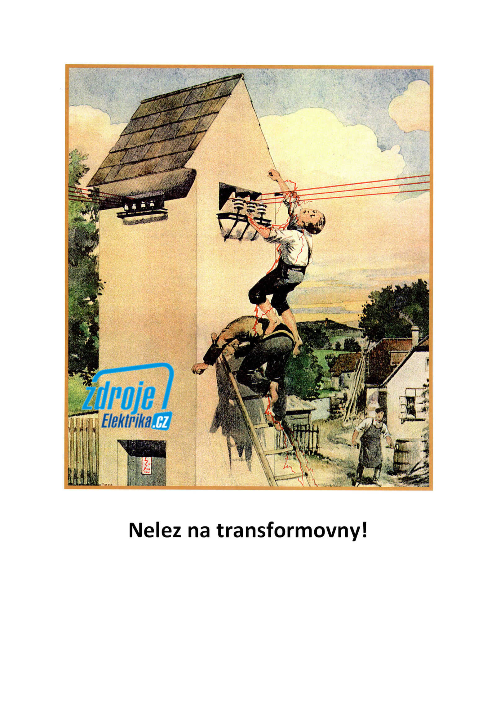 Bezpečnostní plakáty předválečného ESČ. Dbej bezpečnosti při zacházení selektrickým proudem! Nedotýkej se přetržených drátů elektrického vedeníani když leží na zemi! Sám-li spravuješ – více škody naděláš, zavolej odborníka a máš po starosti! Dejte hned spraviti elektrické zařízení, které bije nebo štípe! Opatrně se žárovkami! Nelez na transformovny! Pozor! Neutírej vlhkým hadrem elektrická zařízení! Nepráskej bičem, jsi-li u elektrického vedení! Pozor při výměně pojistek! Stojíš-li u sporáku, nesahej na kovové části svítidel! Není-li vypjat proud, nerýpej se v zásuvce šroubovákem! Na drátech připevňující sloupy, se nehoupej a jimi nelomcuj! Pracuješ-li s vysavačem, nedotýkej se topidel! Nerýpej se v elektrice!