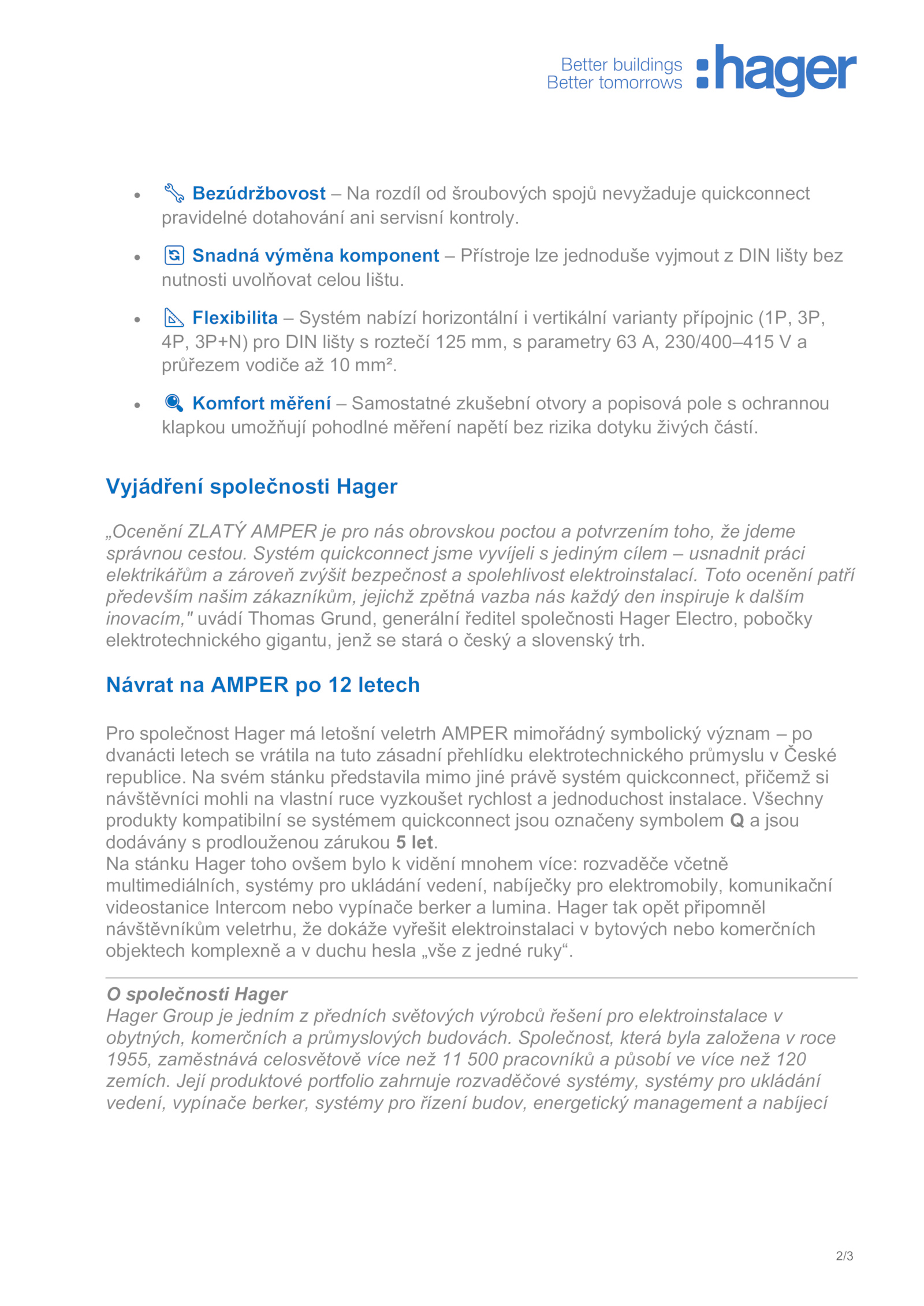 inovacím," uvádí Thomas Grund, generální ředitel společnosti Hager Electro, pobočky