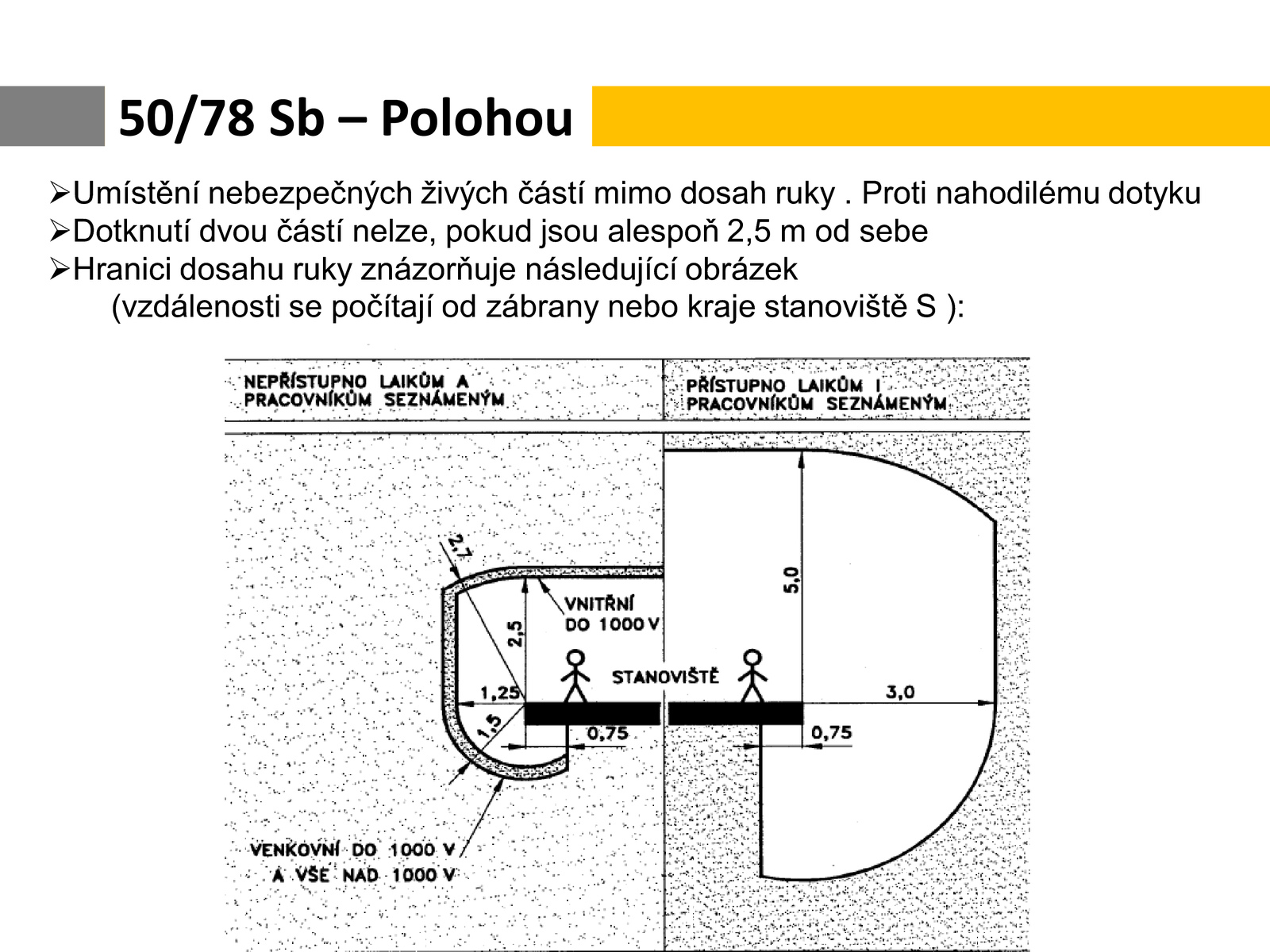 Umístění nebezpečných živých částí mimo dosah ruky Proti nahodilému dotyku