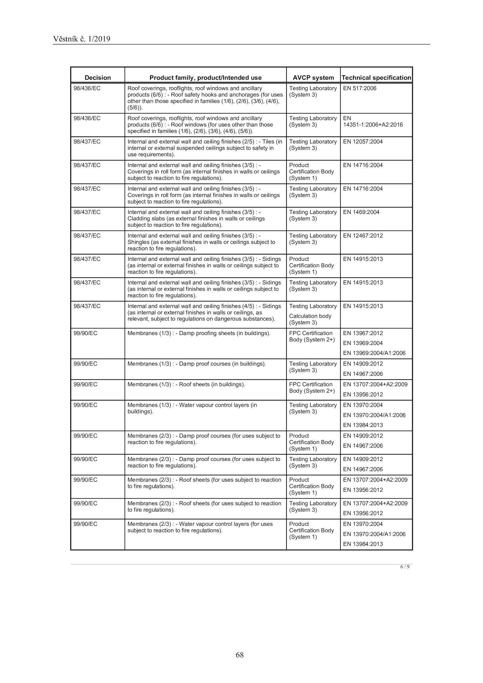 98/436/EC Roof coverings, rooflights, roof windows and ancillary