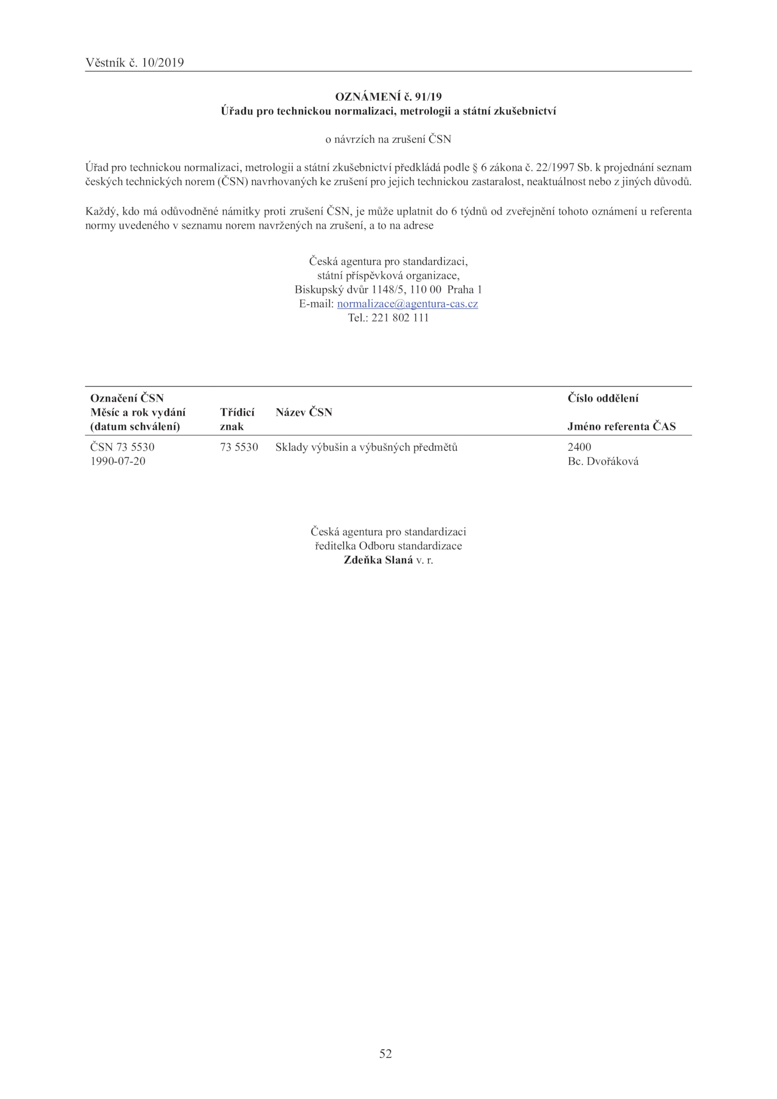 Úřad pro technickou normalizaci, metrologii státní zkušebnictví předkládá podle zákona 22/1997 Sb