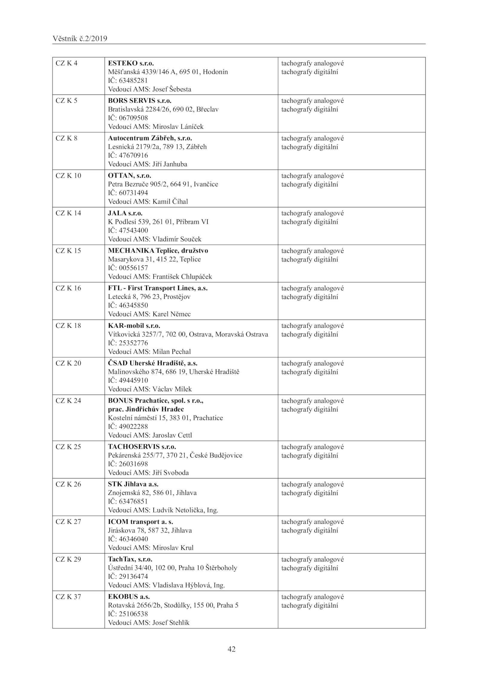 CZ FTL First Transport Lines, a.o.s.s.Věstník č. r.o.s.o.2/2019