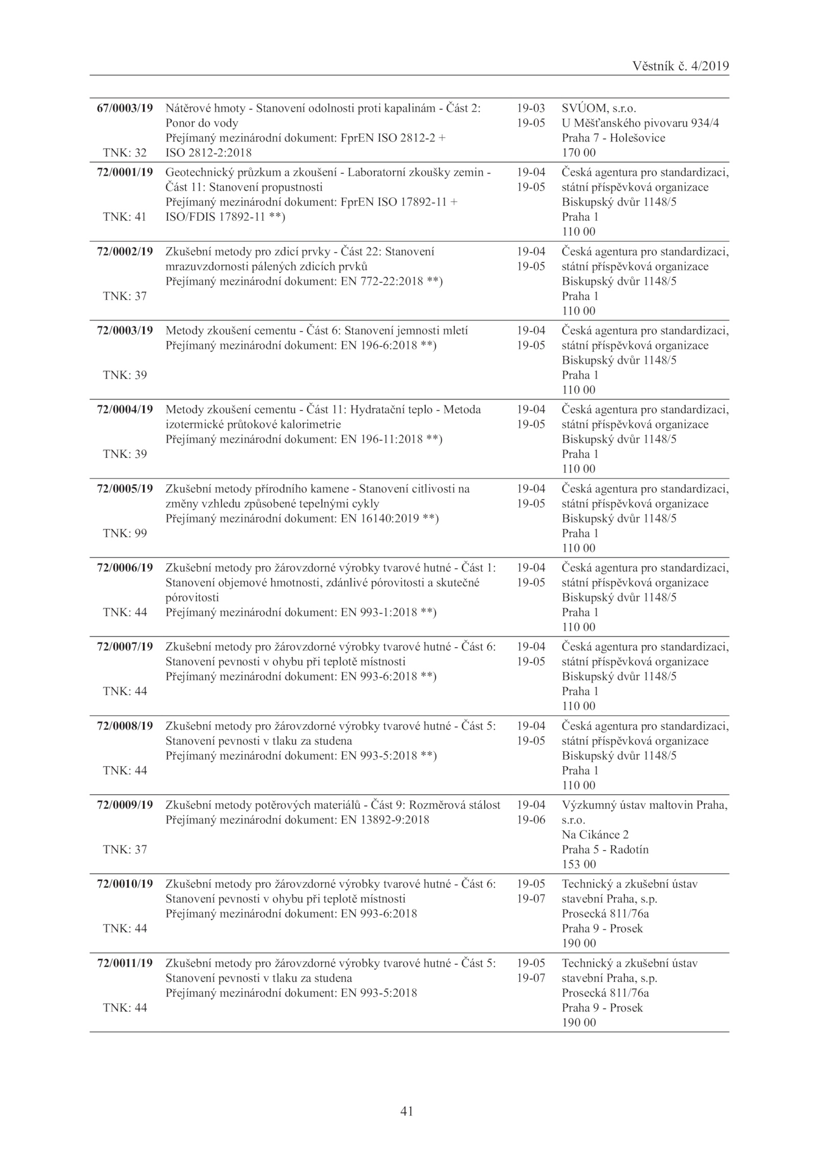 Přejímaný mezinárodní dokument: 16140:2019 **)