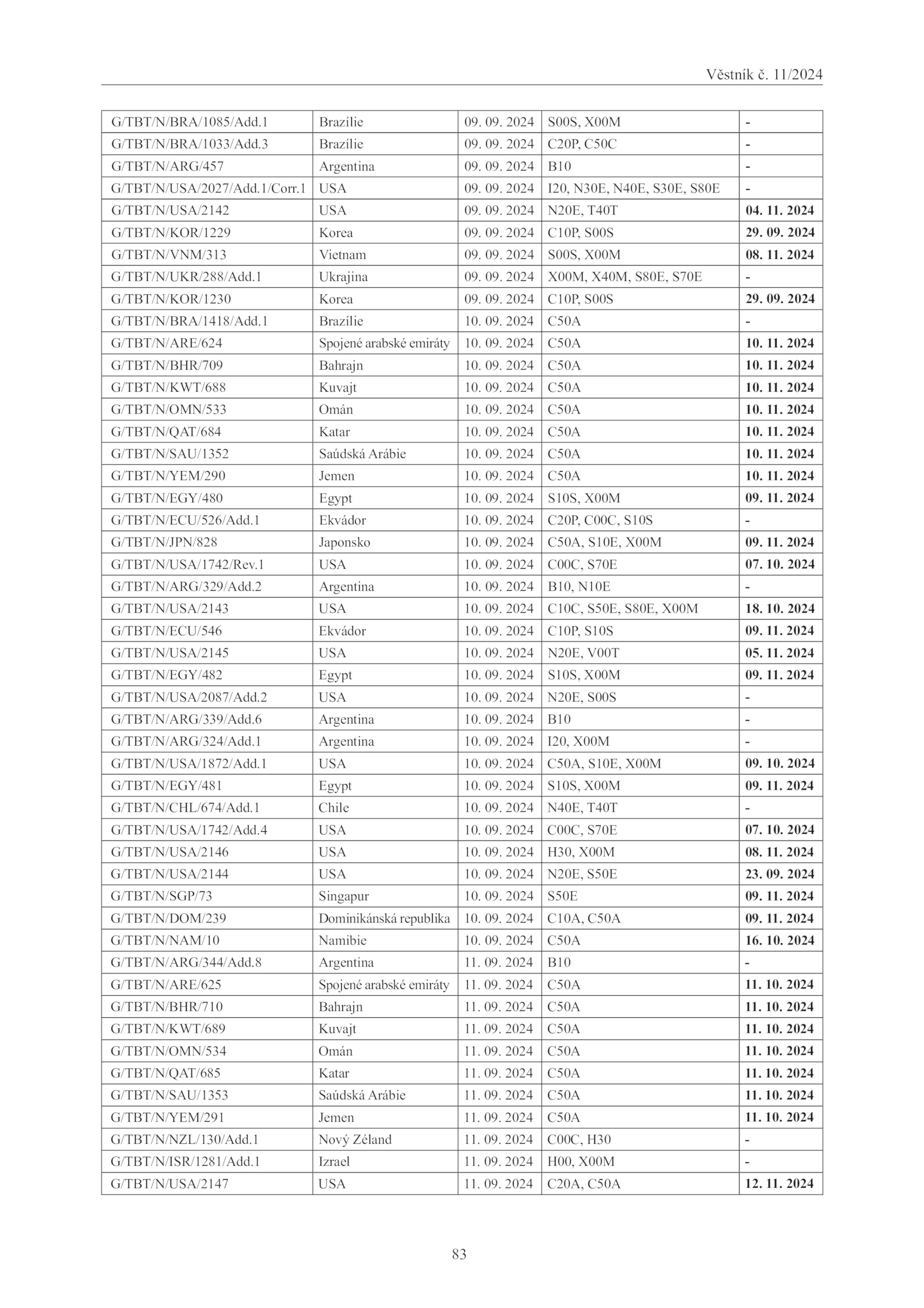 G/TBT/N/EGY/481 Egypt 10.1 Ekvádor 10. 09. 11. 2024 C00C, S70E 07. 09. 2024 S00S, X00M 08.1 Brazílie 10. 11. 2024