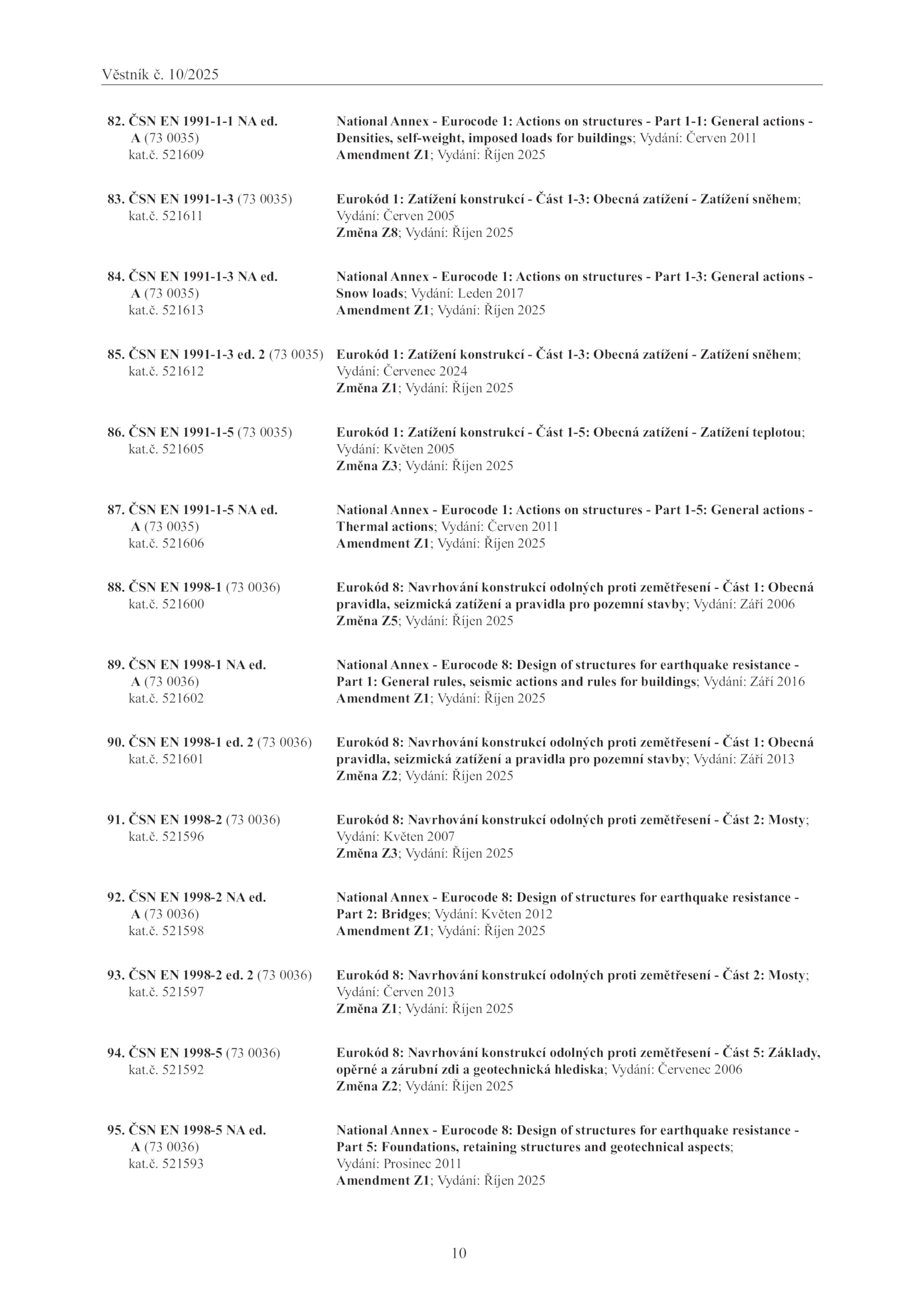 kat.č. ČSN 1991-1-3 ed.Věstník 10/2025