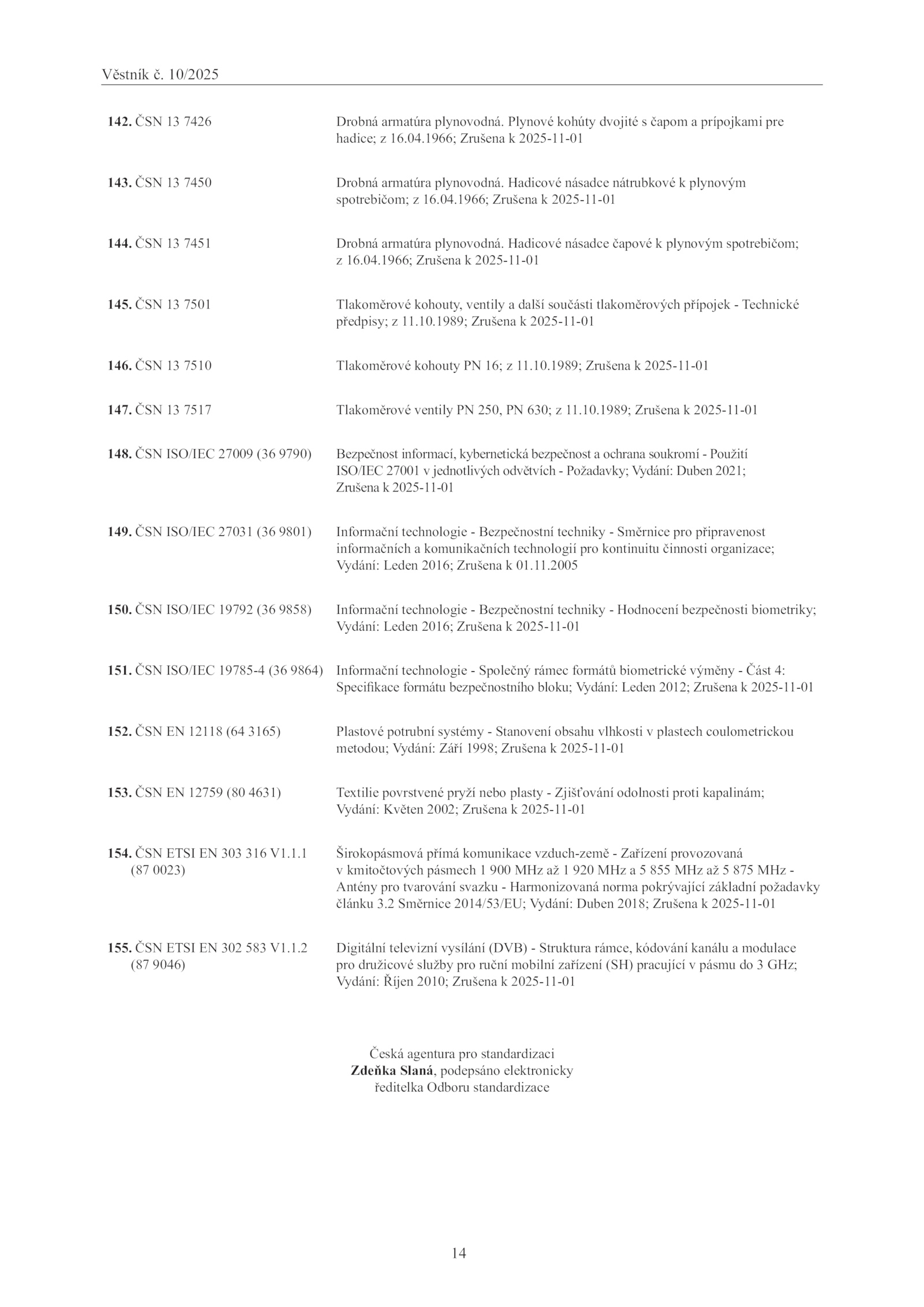 metodou; Vydání: Září 1998; Zrušena 2025-11-01