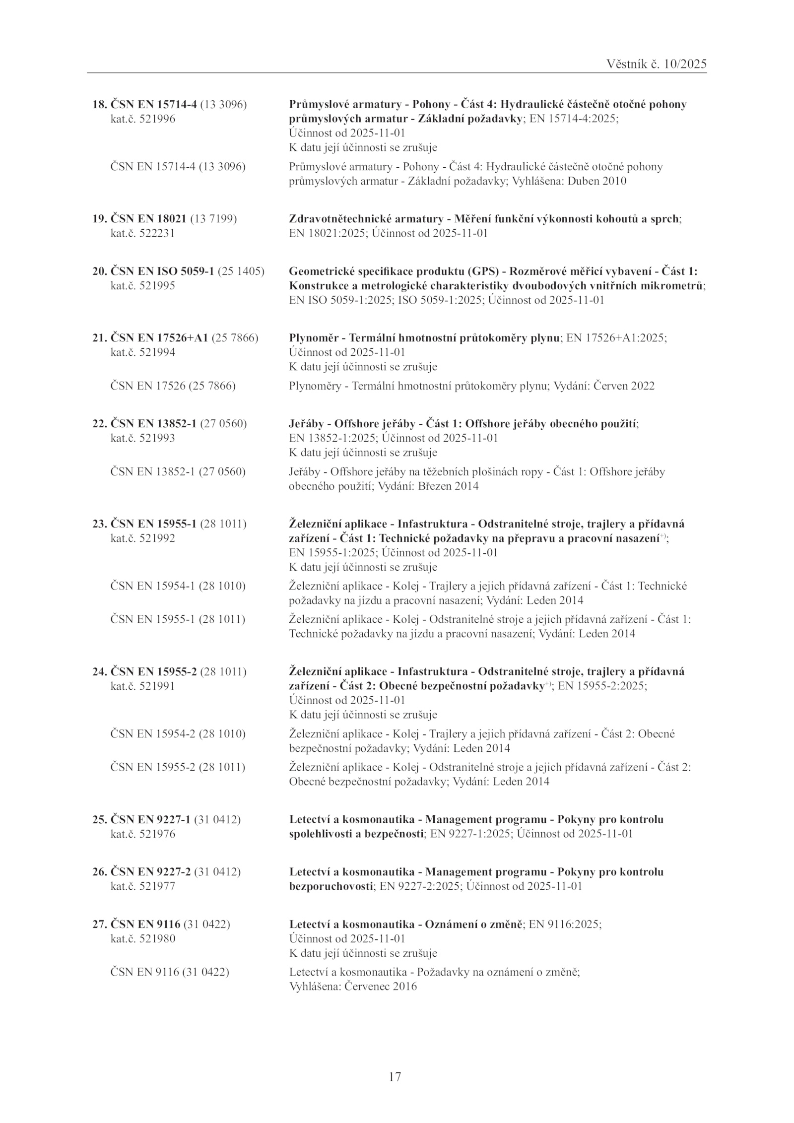 Letectví kosmonautika Oznámení změně; 9116:2025;
