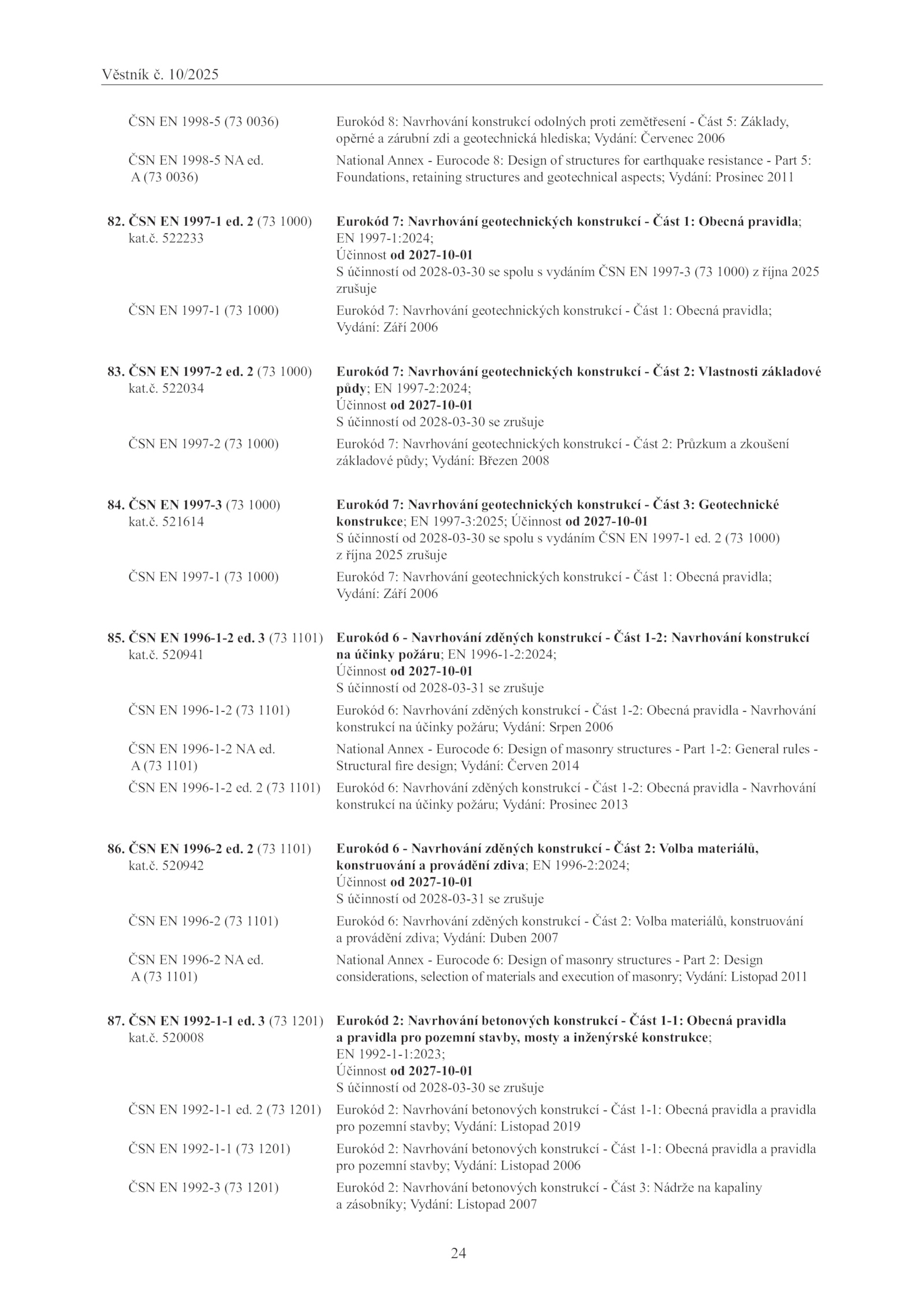 S účinností 2028-03-30 spolu vydáním ČSN 1997-1 ed. 522034
