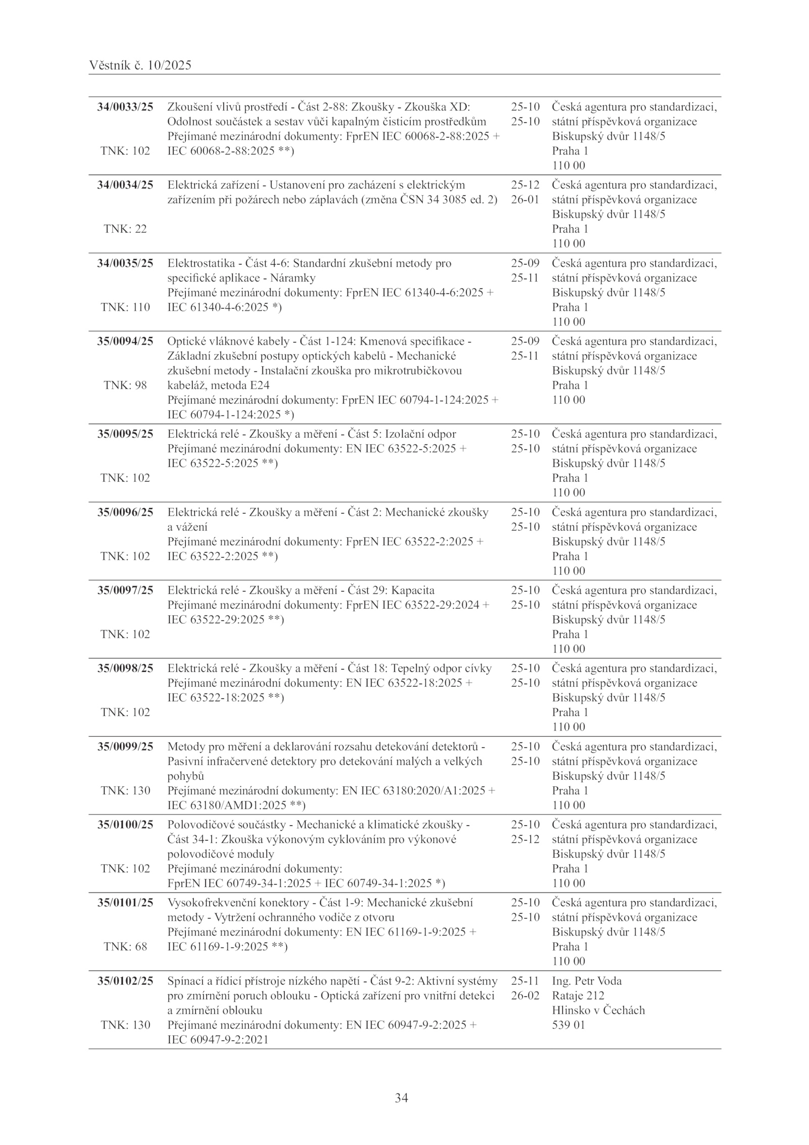 Přejímané mezinárodní dokumenty: IEC 60947-9-2:2025 +