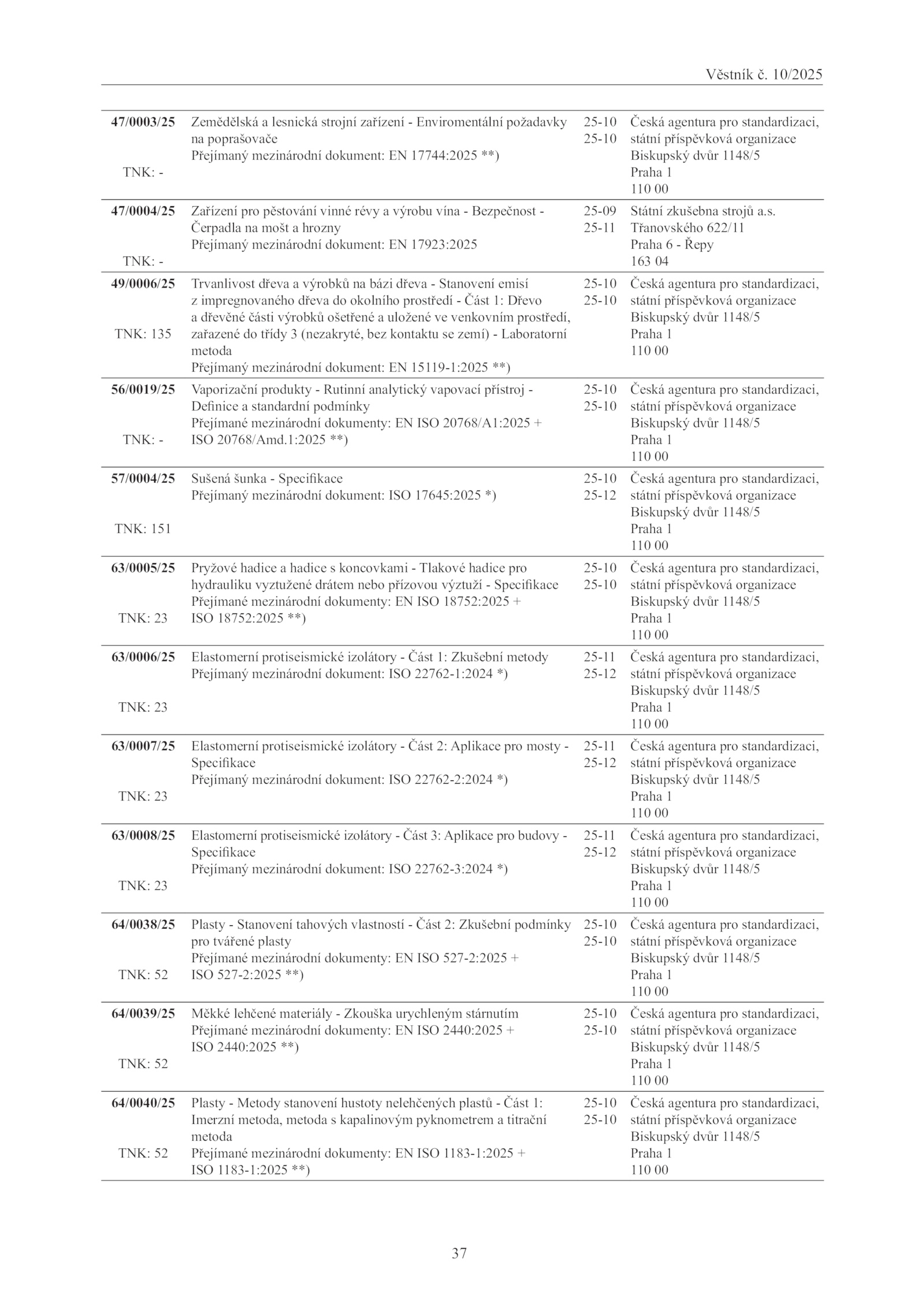 Přejímané mezinárodní dokumenty: ISO 20768/A1:2025 +