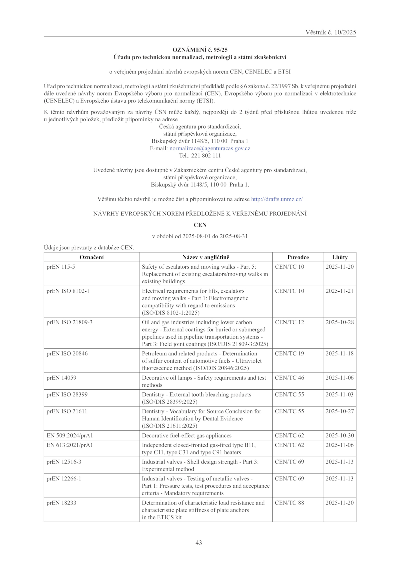 K těmto návrhům považovaným návrhy ČSN může každý, nejpozději týdnů před příslušnou lhůtou uvedenou níže