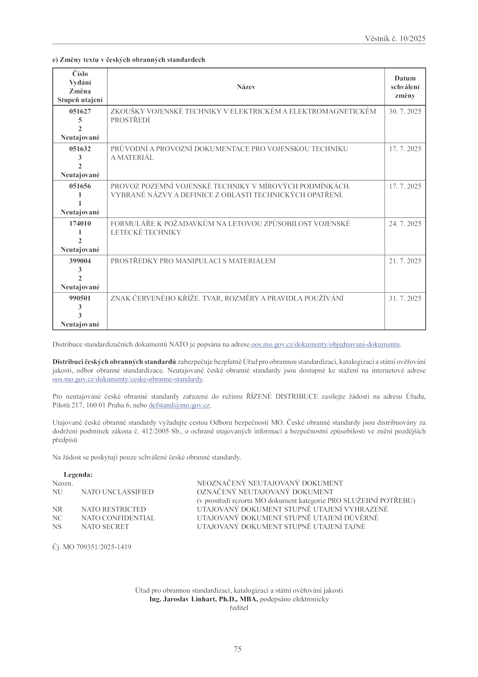 Pilotů 217, 160 Praha nebo defstand@mo.cz/dokumenty/ceske-obranne-standardy. 2025