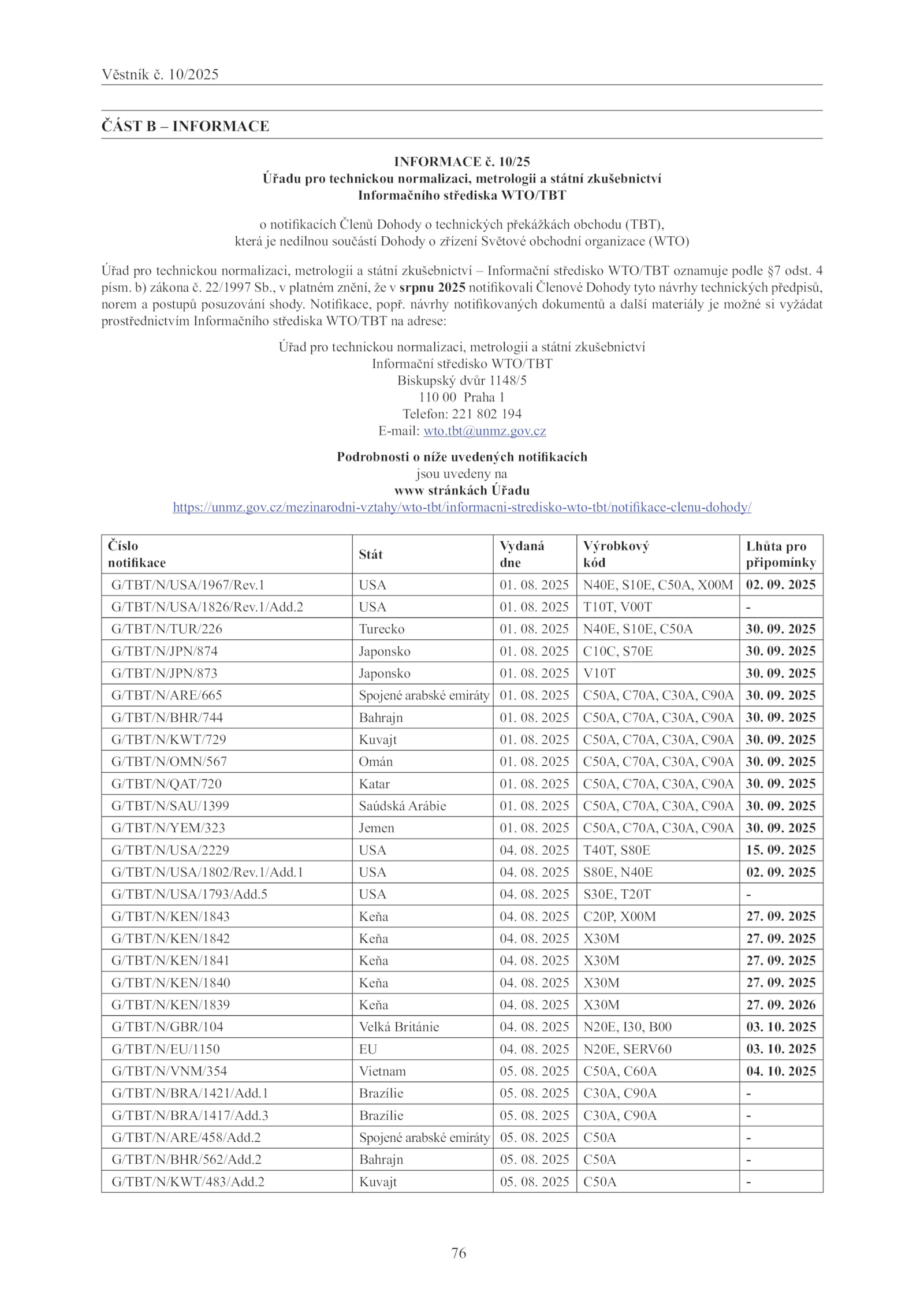 G/TBT/N/KEN/1839 Keňa 04. 2025 N20E, SERV60 03.2 USA 01. 09. zákona 22/1997 Sb. 08. 2025