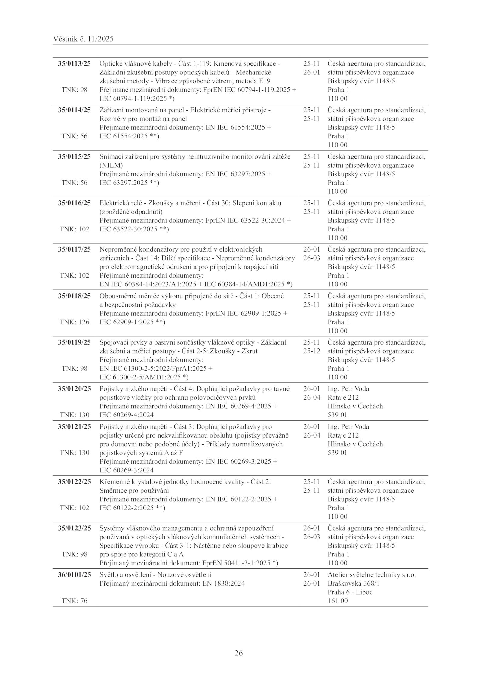 Přejímané mezinárodní dokumenty: IEC 61554:2025 +