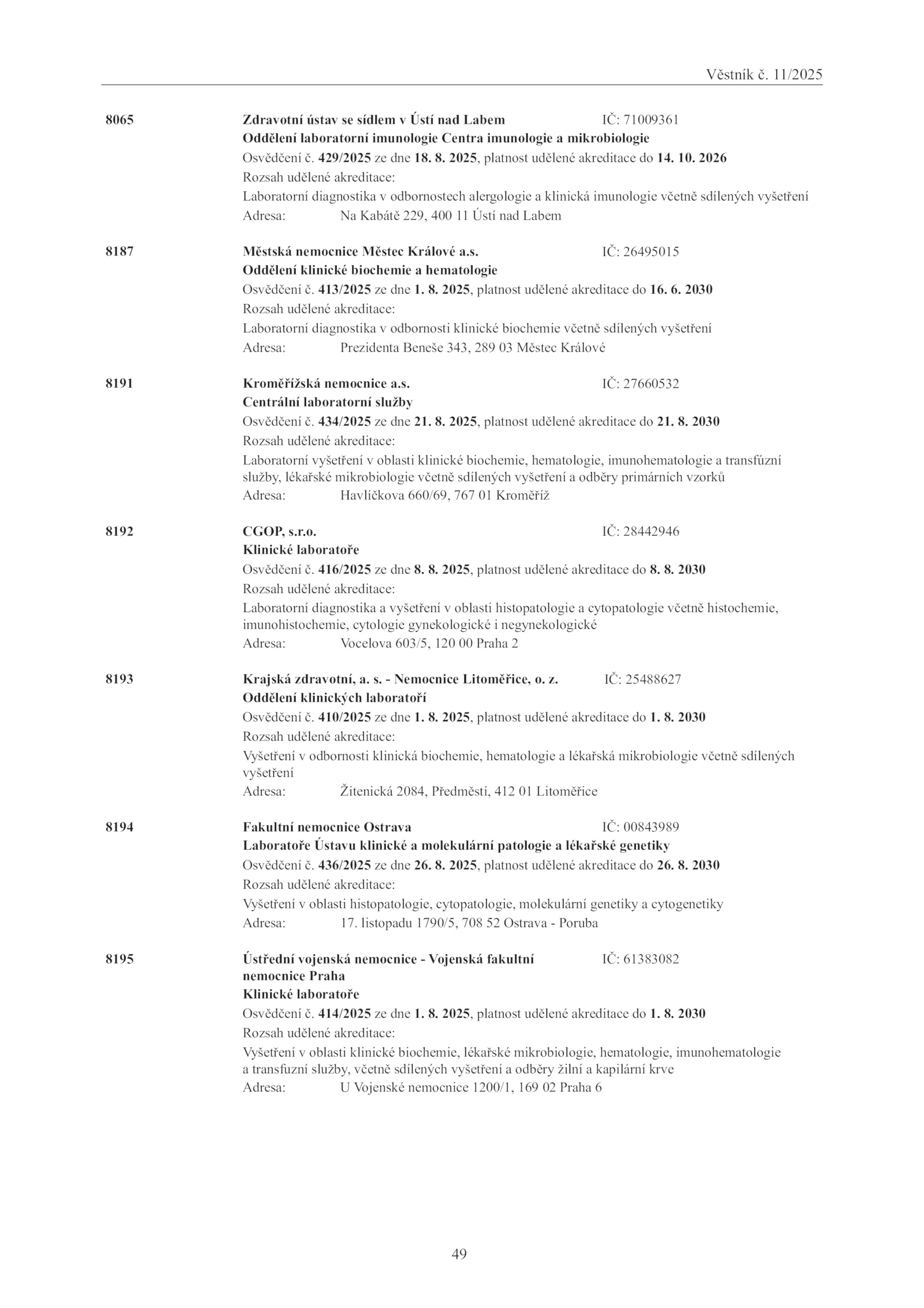 Osvědčení 436/2025 dne 26.Věstník 11/2025