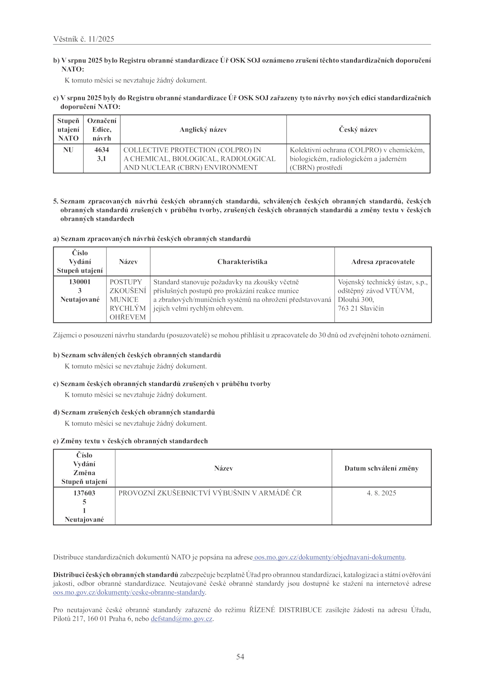 b) srpnu 2025 bylo Registru obranné standardizace OSK SOJ oznámeno zrušení těchto standardizačních doporučení