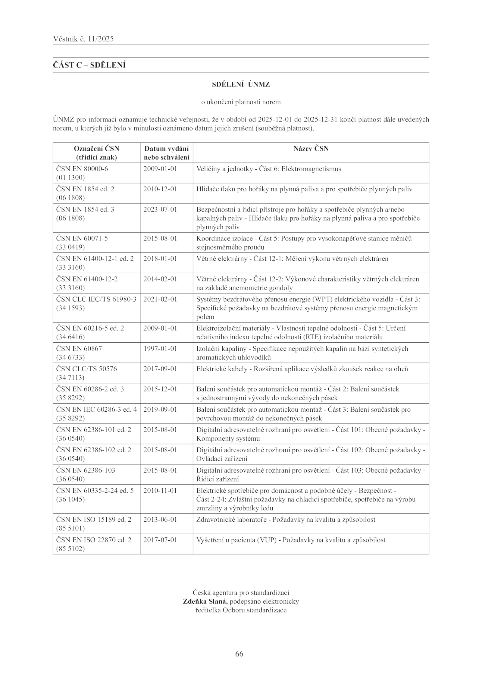 ÚNMZ pro informaci oznamuje technické veřejnosti, období 2025-12-01 2025-12-31 končí platnost dále uvedených