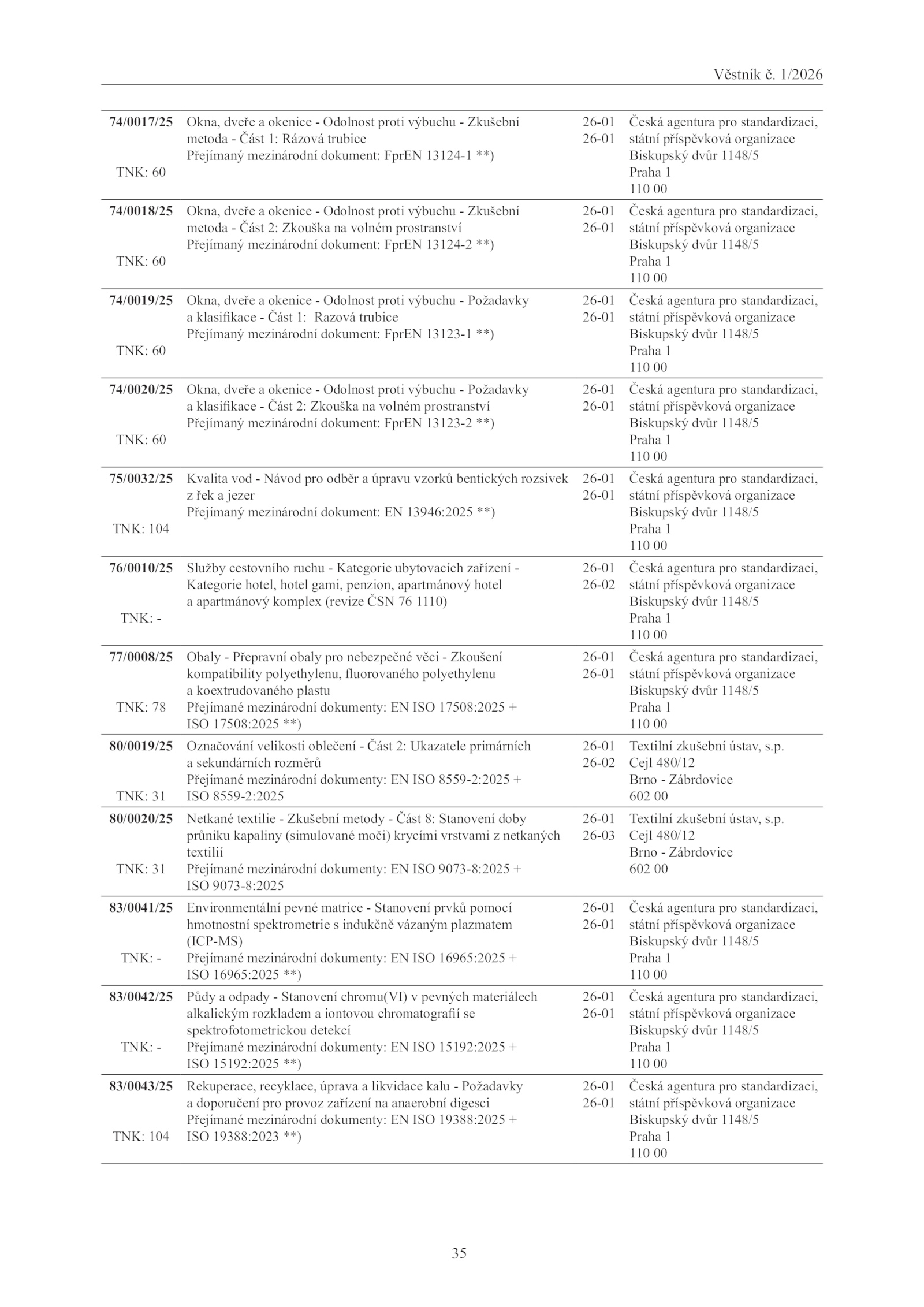 Přejímaný mezinárodní dokument: 13946:2025 **)