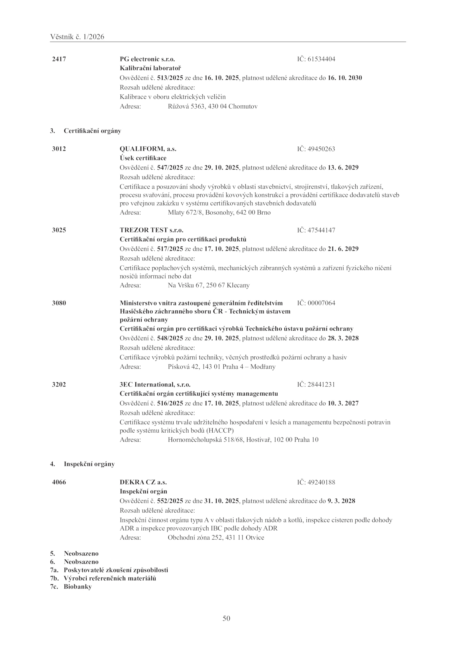 5. 2025, platnost udělené akreditace 16.s. 10. Certifikační orgány