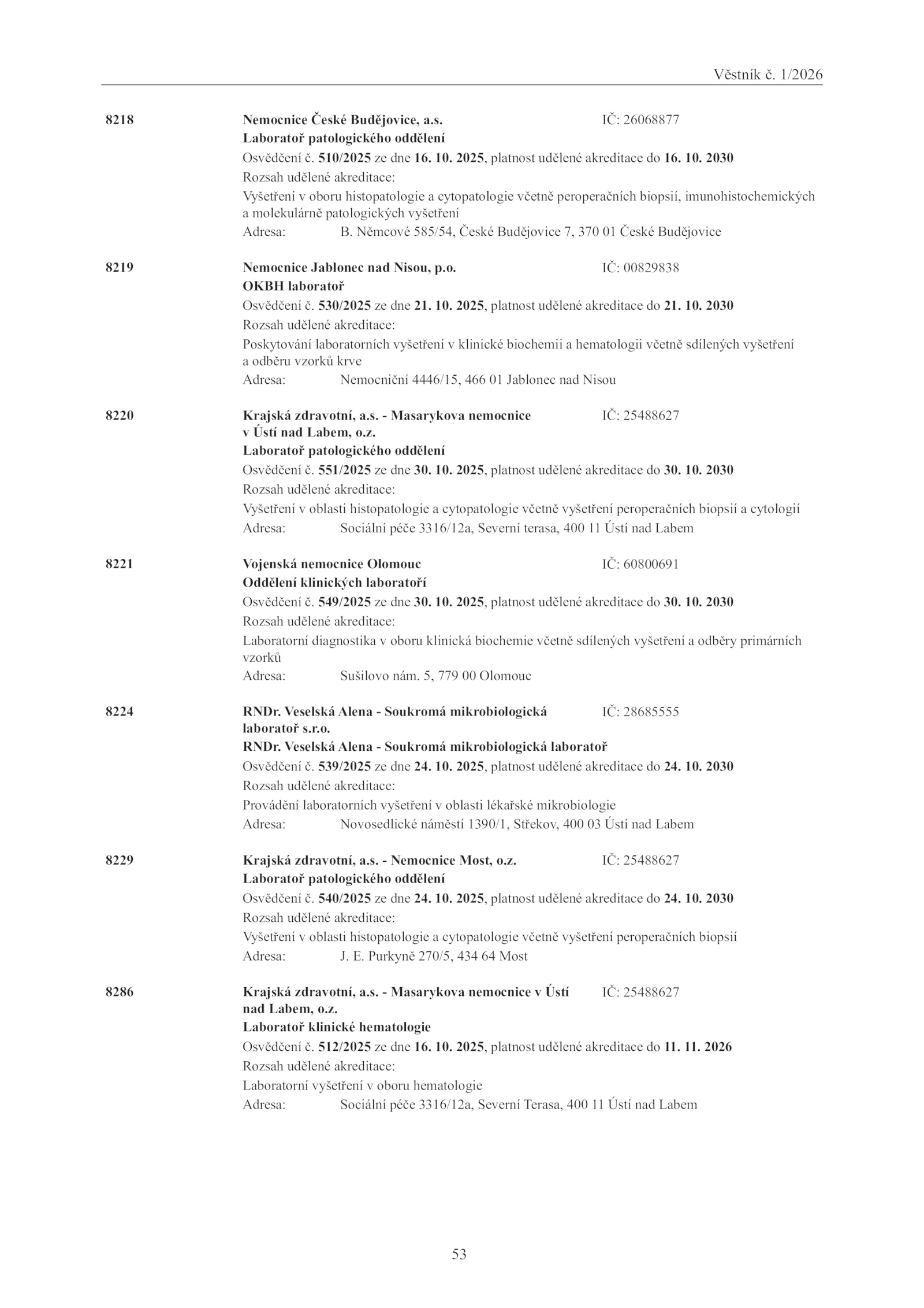 8286 Krajská zdravotní, a. 10. 2025, platnost udělené akreditace 11. Masarykova nemocnice