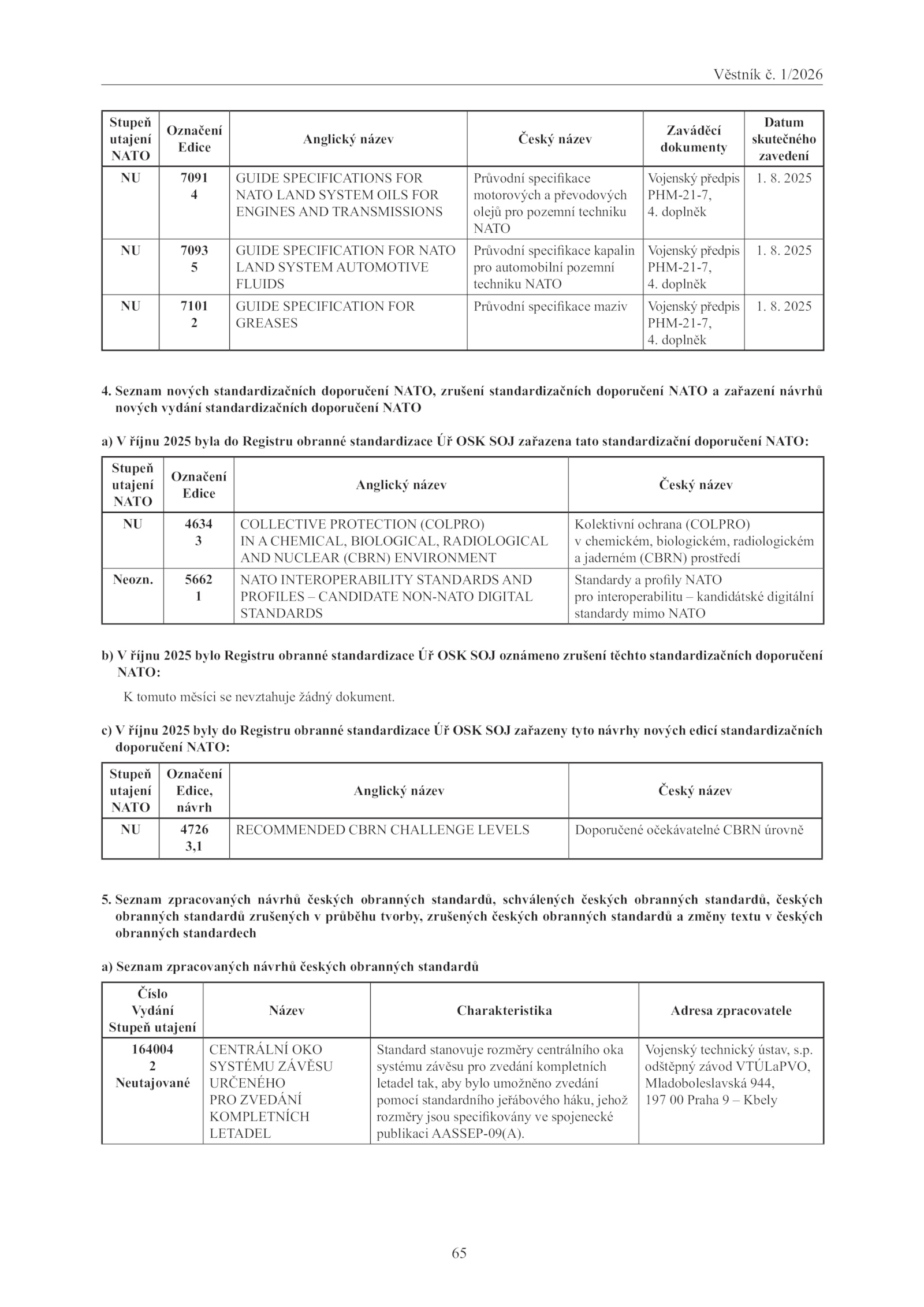 c) říjnu 2025 byly Registru obranné standardizace OSK SOJ zařazeny tyto návrhy nových edicí standardizačních