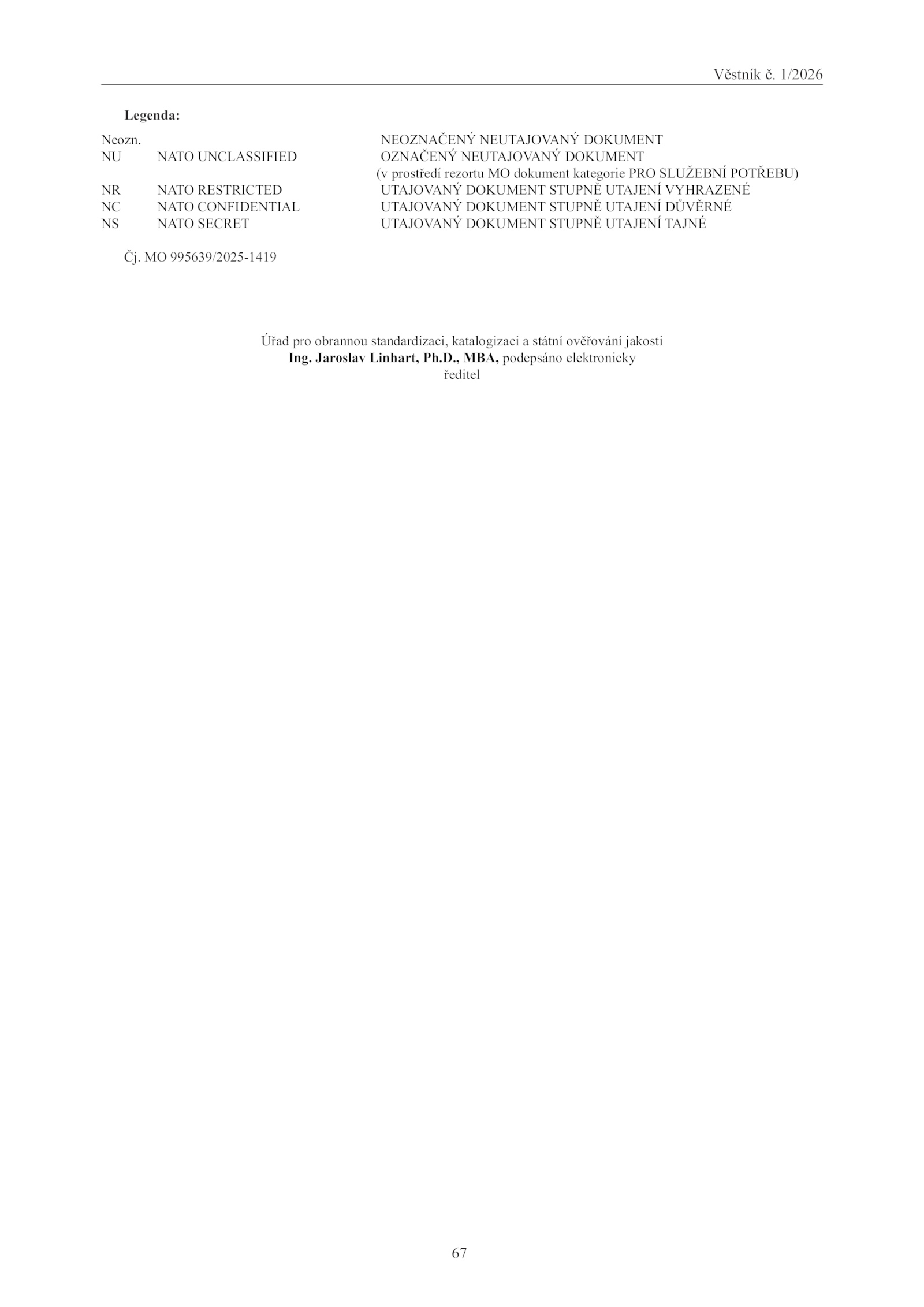 NR NATO RESTRICTED UTAJOVANÝ DOKUMENT STUPNĚ UTAJENÍ VYHRAZENÉ