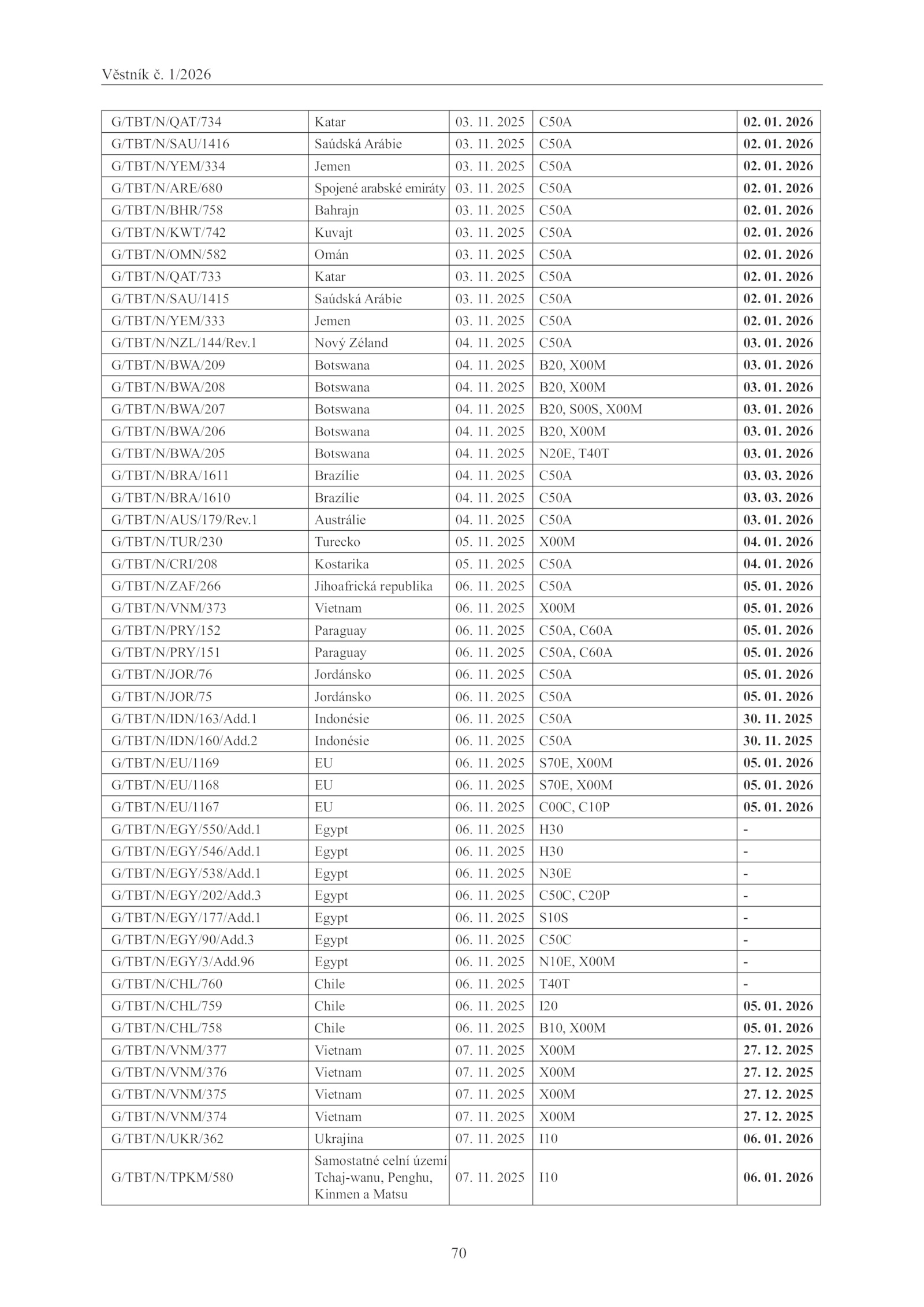 G/TBT/N/BWA/208 Botswana 04. 11. 11. 2025 S70E, X00M 05. 01. 2025 X00M 27. 01. 2025 C50A 02. 2026