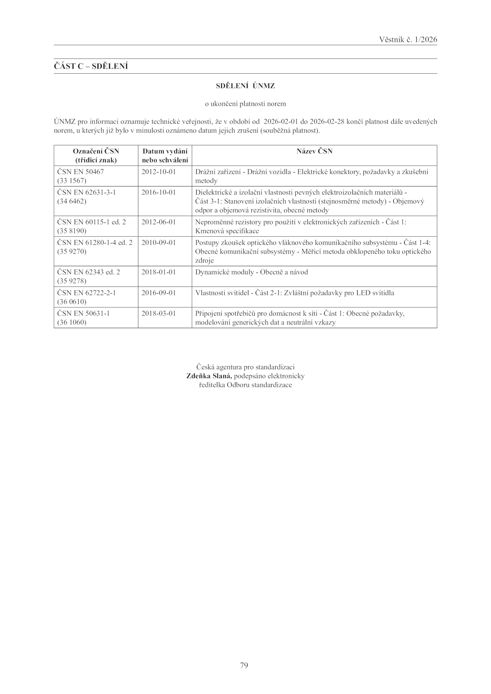 ÚNMZ pro informaci oznamuje technické veřejnosti, období 2026-02-01 2026-02-28 končí platnost dále uvedených