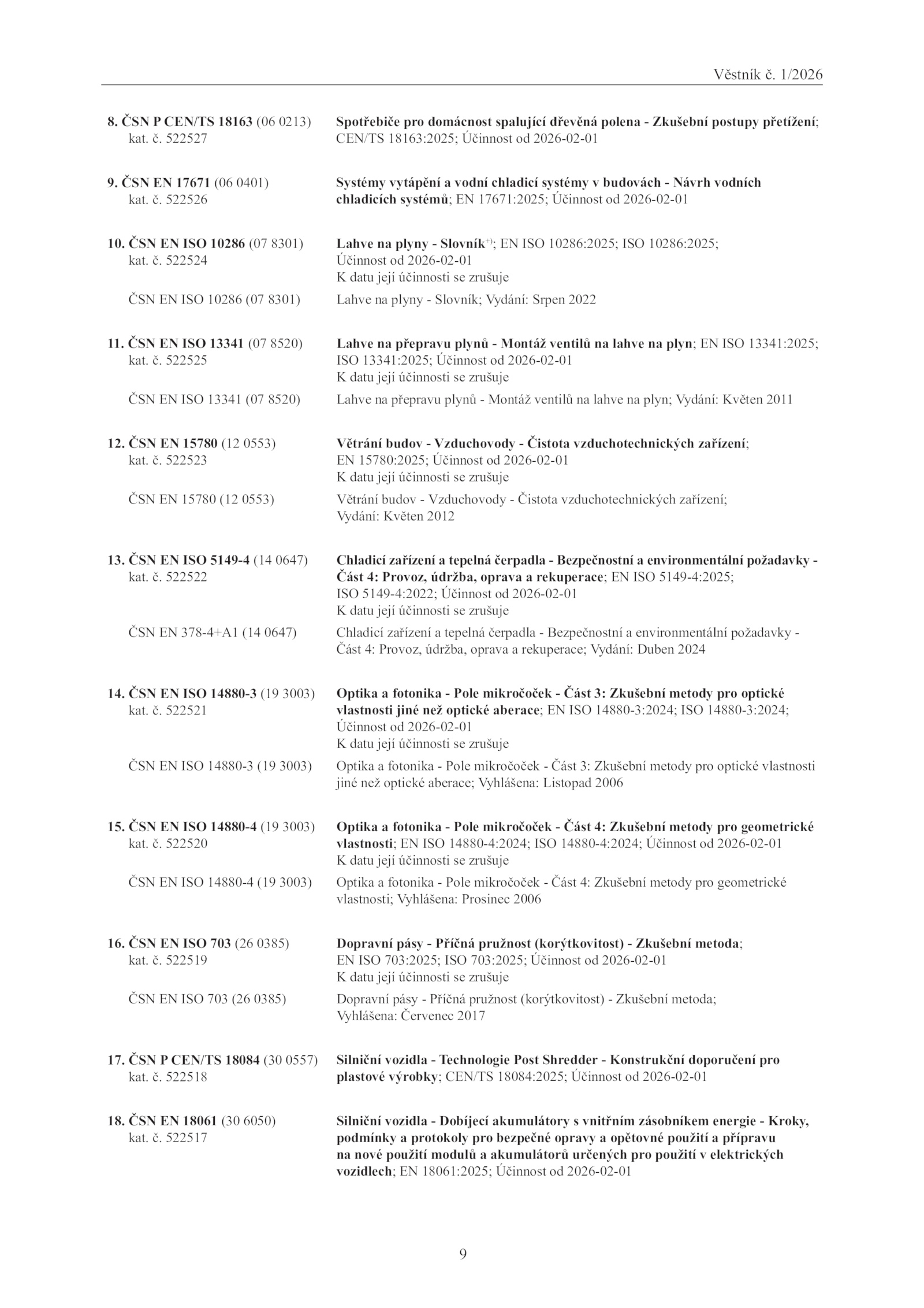 vozidlech; 18061:2025; Účinnost 2026-02-01
