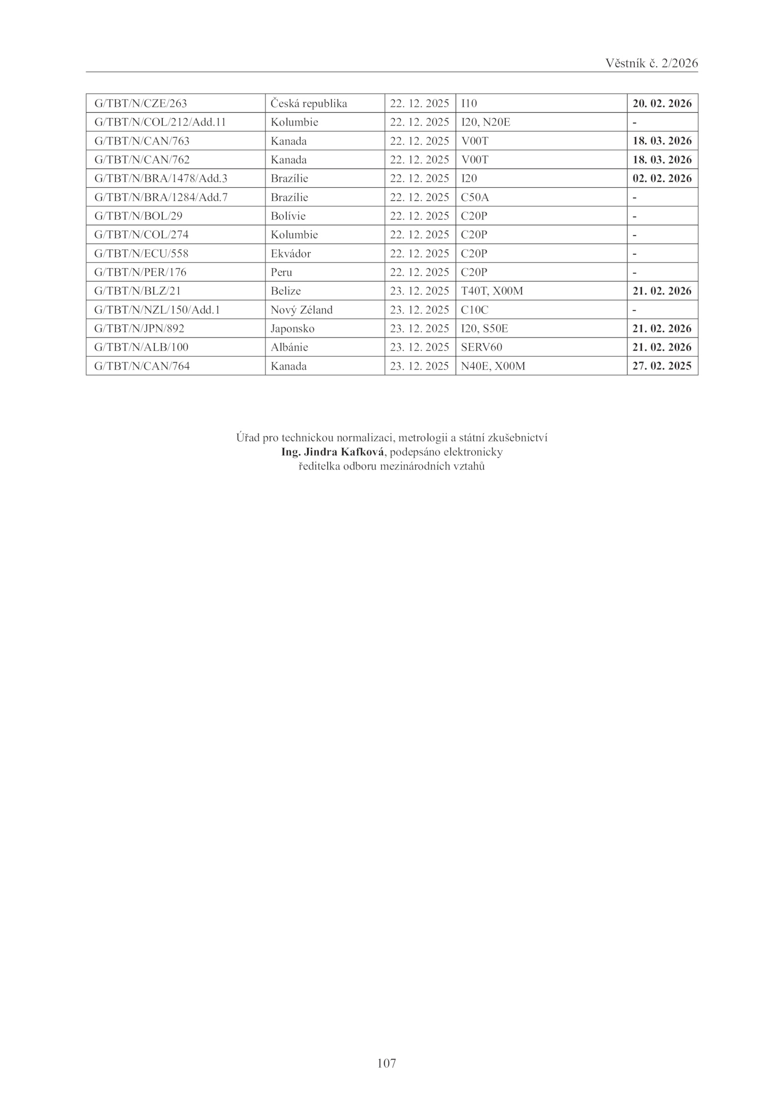 G/TBT/N/CZE/263 Česká republika 22. 12. 12.11 Kolumbie 22. Jindra Kafková, podepsáno elektronicky