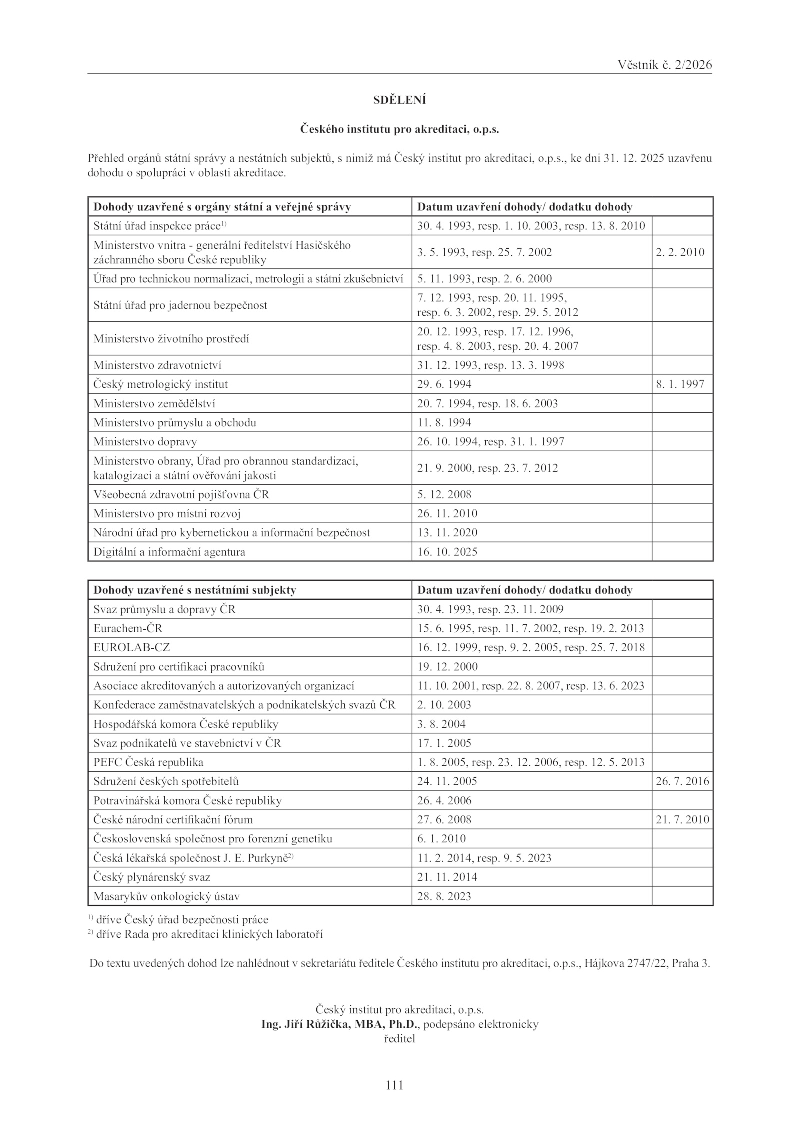 Do textu uvedených dohod lze nahlédnout sekretariátu ředitele Českého institutu pro akreditaci, o. 12. 2002, resp. 23. 23. 2007